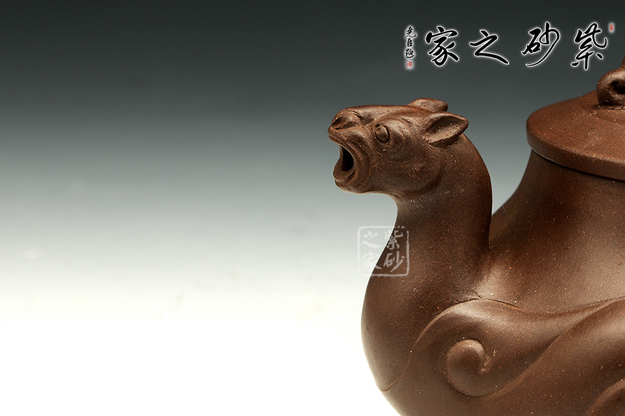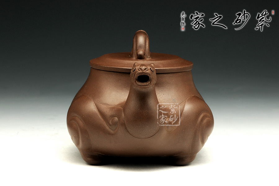 整壺以一巨龍為造型創(chuàng)作而成,壺嘴龍面炯炯,靈動(dòng)不凡,壺把好似巨龍之尾,鏗鏘有力,彎曲有致。壺底納四足,好似巨龍騰祥云而來立足穩(wěn)如泰山。壺身上的如意紋理吉祥美好,又像是龍身的肌肉紋理一樣遒勁有力。整壺工藝極佳造型如鼎,氣勢(shì)吉祥霸氣,靈獸有鎮(zhèn)宅辟邪之功用,極富古樸韻味。