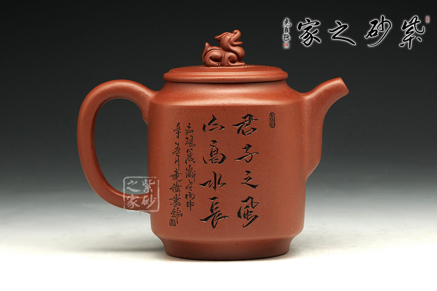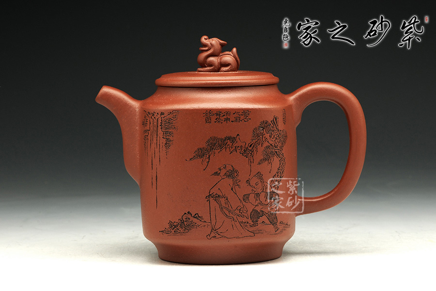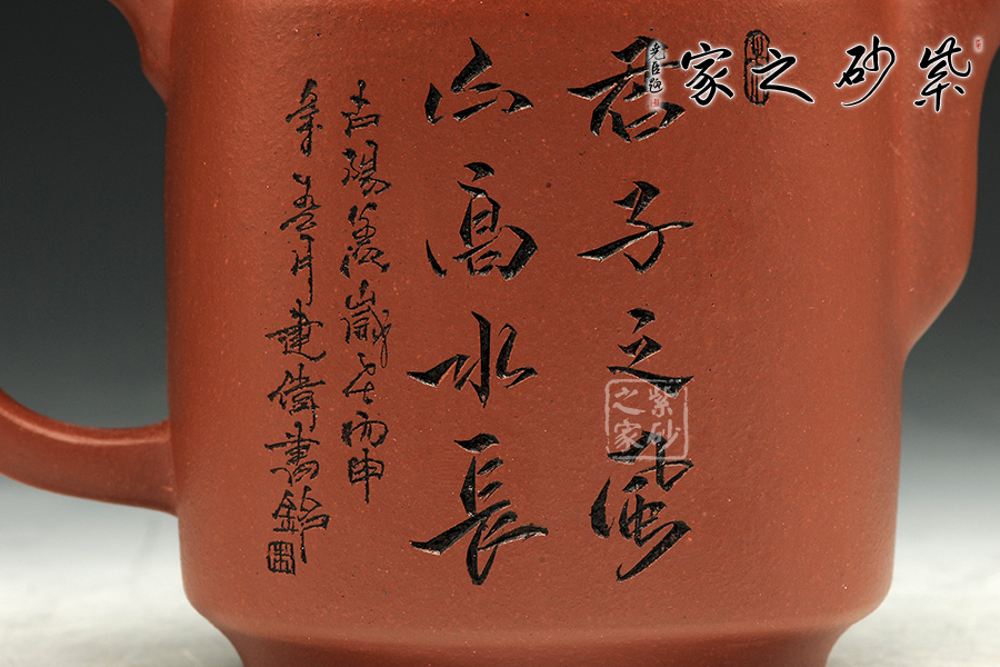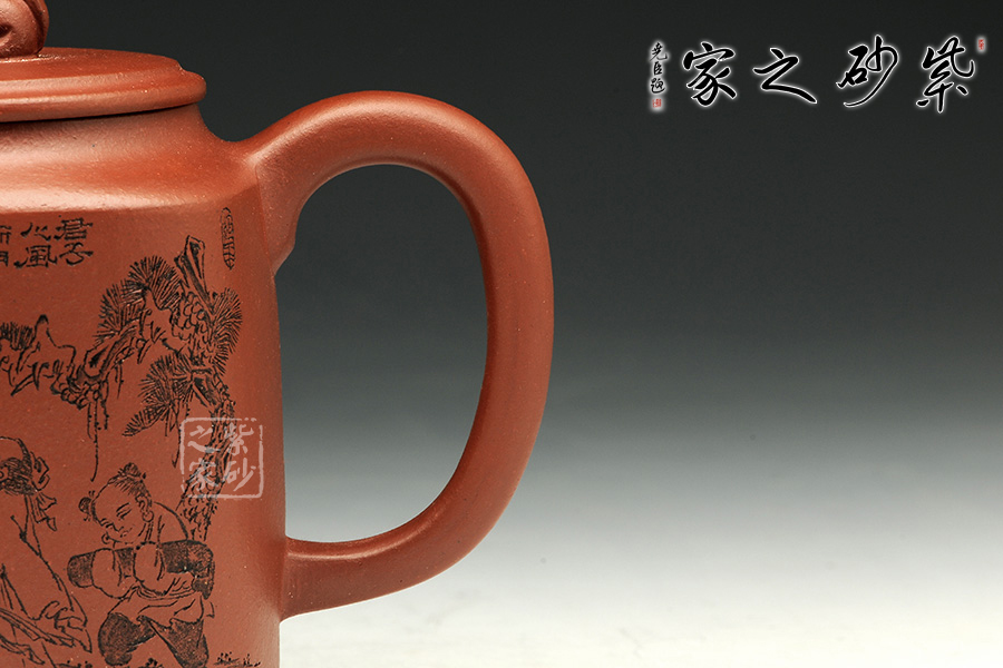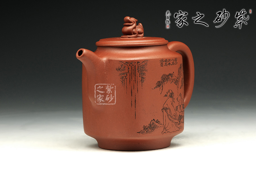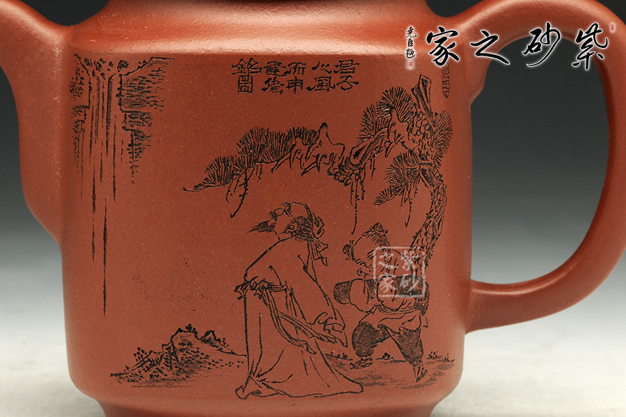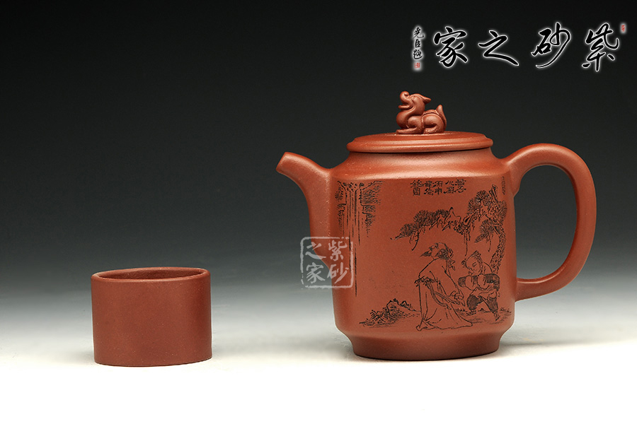 此款作品為朱萍萍老師全手工制作,此壺采用清水泥煉制,泥色醇和爾雅,文人氣息濃厚。壺身雙面刻繪,壺身正面刻繪,人物栩栩如生,刻繪極其細(xì)膩,線條處理十分到位;壺身反面篆刻“君子之風(fēng),山高水長”字跡灑脫,風(fēng)骨畢露,老師以刀為筆,獨具風(fēng)格;此款作品,氣質(zhì)敦厚,穩(wěn)重,350CC適合三四人品茗小聚,收藏升值。
