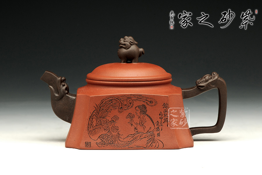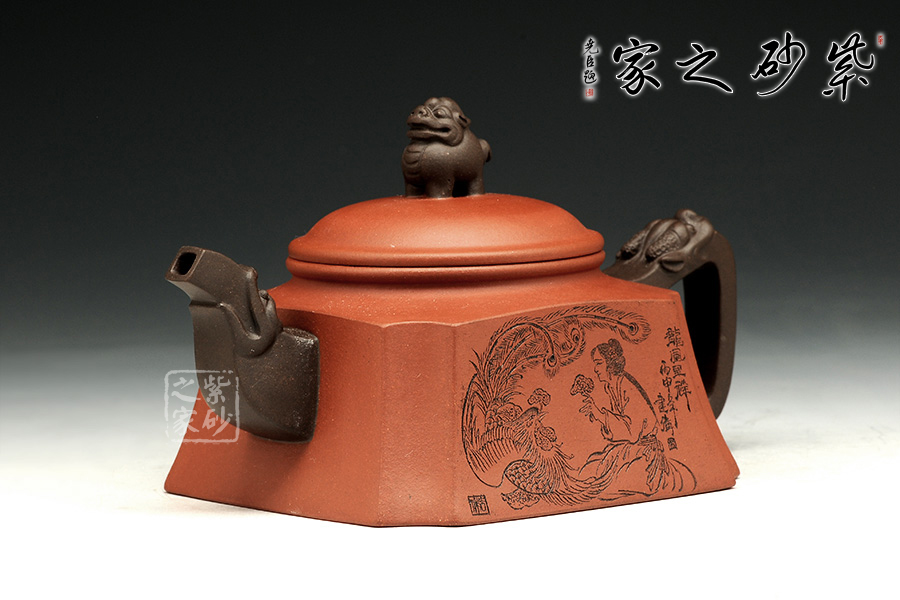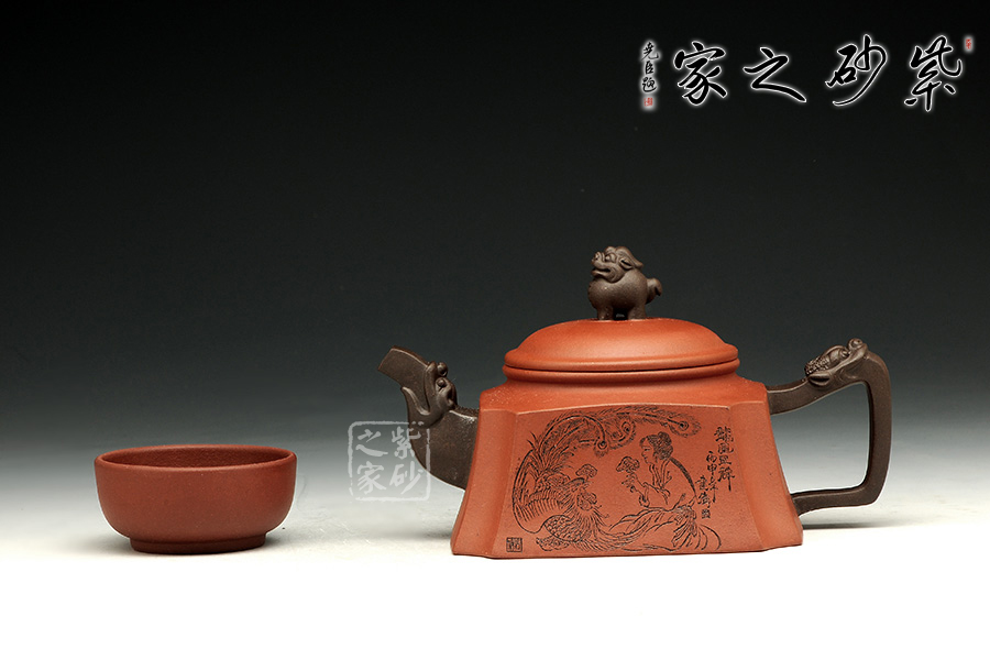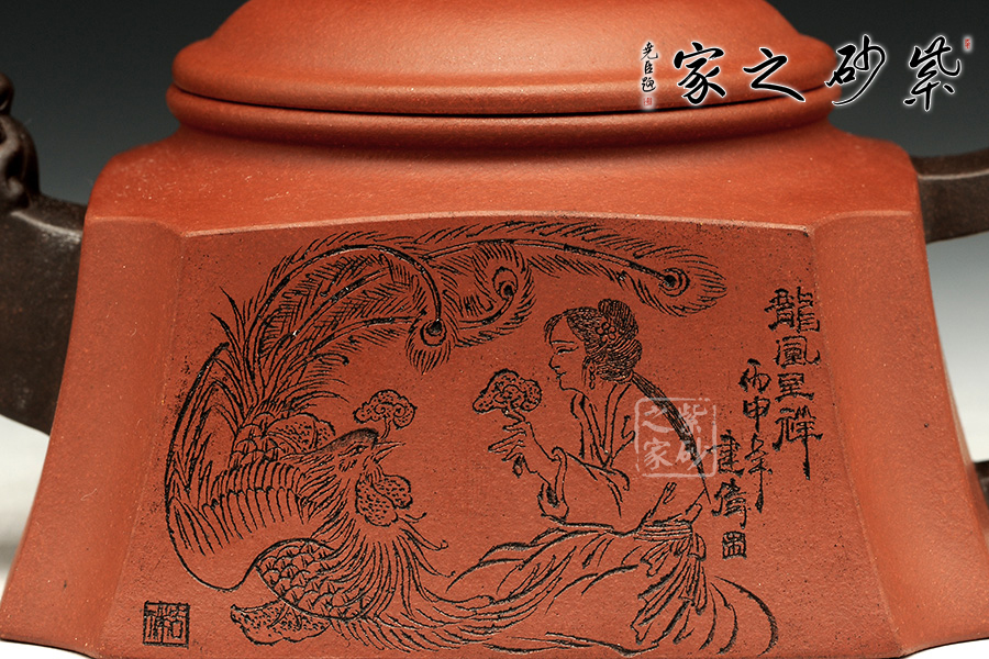 朱建偉老師的這把龍鳳呈祥壺,壺身飽滿圓潤,喜慶之味濃厚。壺身刻繪極其細膩,老師以刀為筆,正面刻繪人物栩栩如生,鳳凰好似要躍然飛起;壺身反面刻繪“龍鳳呈祥”,刀法剛勁有力,字體灑脫自如。250CC適合獨自把玩品賞,壺氣韻充盈,朱建偉老師現(xiàn)為研究員級高級工藝美術師,制壺多年工藝精到,實用性強,紫砂之家力薦!
