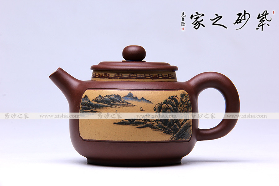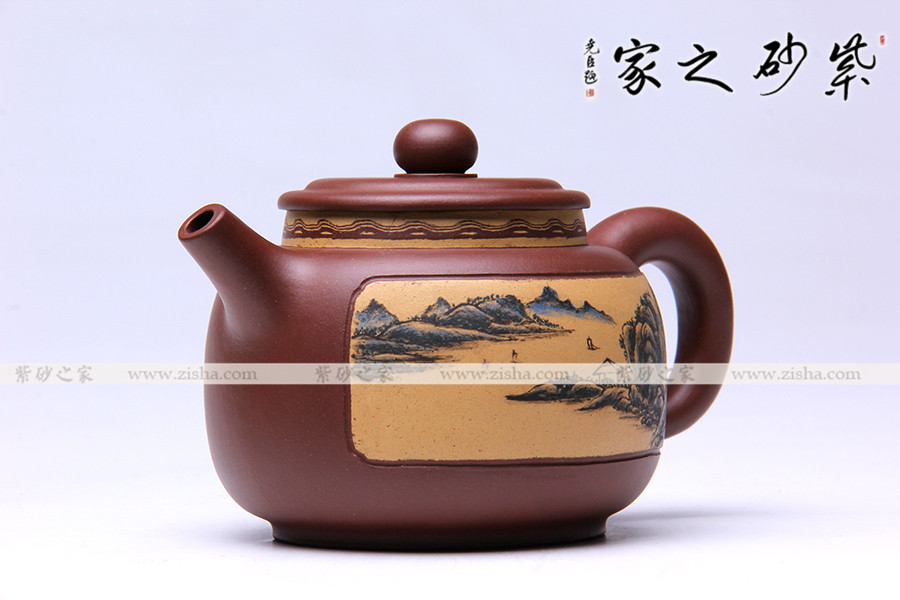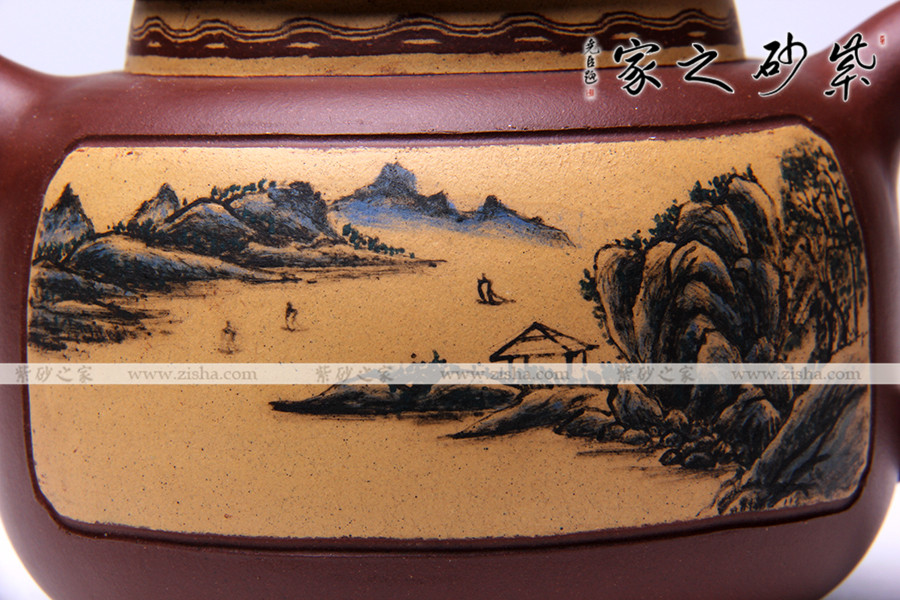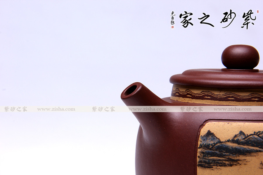 此款作品造型敦厚、穩(wěn)重,壺身以原礦底槽青全手工制作,壺身泥質(zhì)古樸,質(zhì)感特殊;此款作品,壺身刻繪刀法剛勁有力,自成一體,風(fēng)格凸顯,彰顯此壺文人魅力;壺身山水畫(huà)卷,詩(shī)情畫(huà)意展露無(wú)遺,頗有韻味;此款作品,造型簡(jiǎn)單,各部位細(xì)節(jié)處理極為精準(zhǔn);壺蓋置于壺口之上,子母線流暢流暢自如;壺身圈底,襯托壺身,使此壺更加富有張力;此款作品400CC適合三五好友品茗小聚,實(shí)為收藏之佳作。