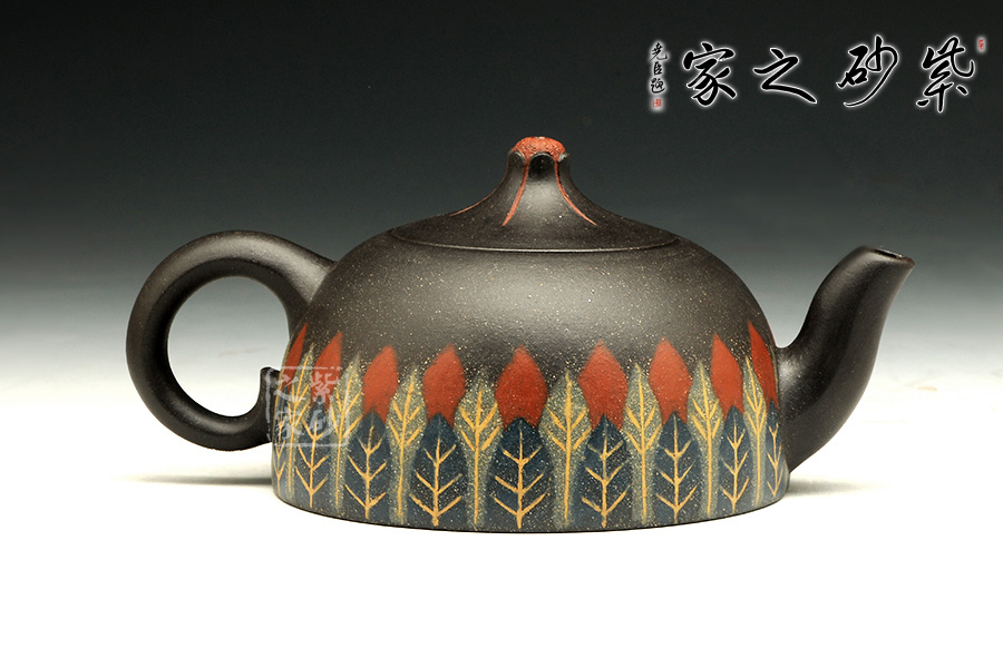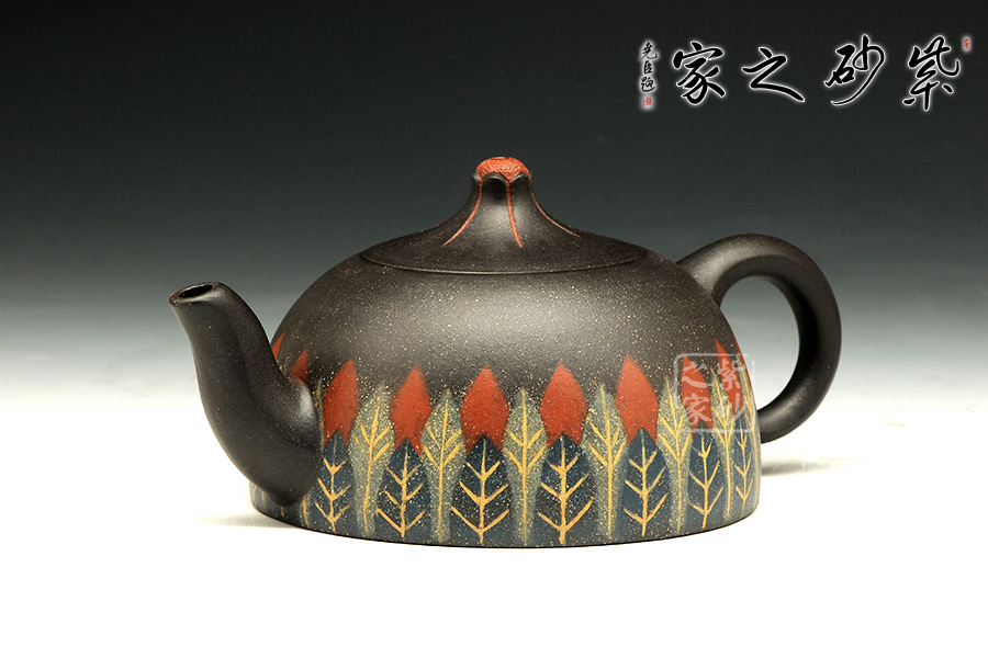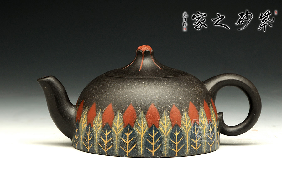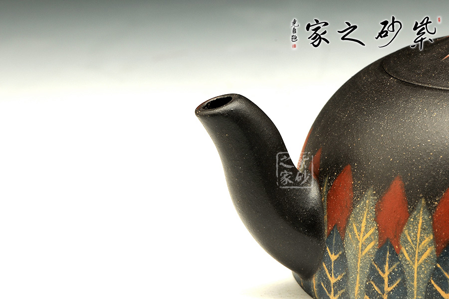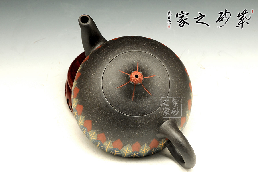 此款作品,造型端莊、穩(wěn)重,壺身采用黑泥制作,泥色古樸,其色如墨,似黑夜浩瀚天際,深不可測(cè),配以點(diǎn)點(diǎn)金砂,直如天星閃爍,高掛暗夜長(zhǎng)空;壺身線條流暢,圈把拿捏舒適;彎流嘴,出水流暢,斷水利落;此款作品為老師全手工制作,收藏升值。