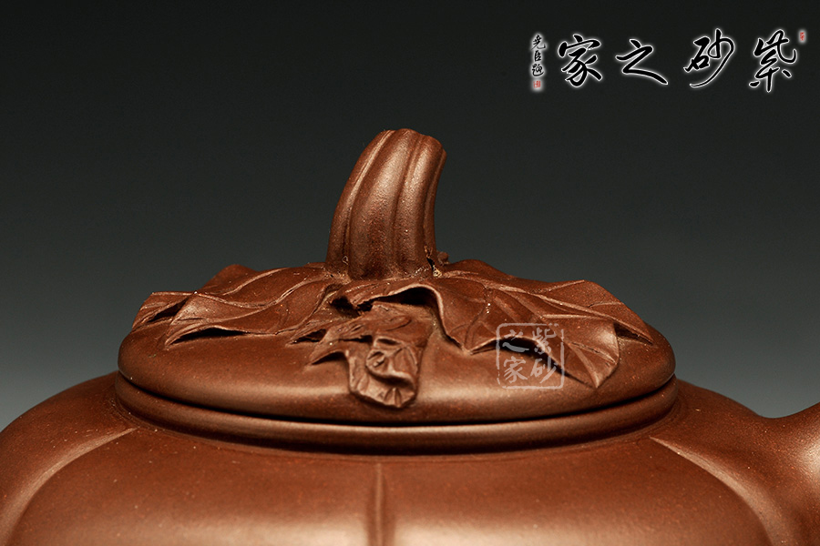 這款筋紋瓜器,以甜瓜為形制成,壺身飽滿圓潤,壺口到壺底形成微向內(nèi)凹陷的筋紋弧度,給人以挺括豐腴的感受;底部的弧線陰影也巧妙地形成勾勒的效果,甚是精妙;壺身上長瓜蒂壺鈕加以藤葉裝飾為壺更添精神,耳形端把暗接精湛,虬曲有勁,端握溫和稱手;暗接壺嘴,短而精悍,嘴口圓潤,出水有勁。整款壺田園逸趣,不失生動與情趣,極富質(zhì)感。