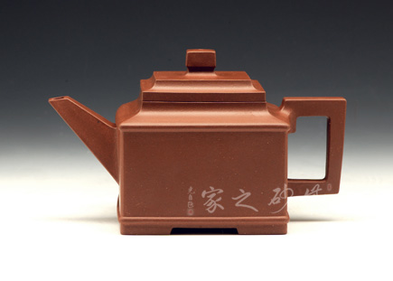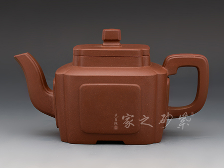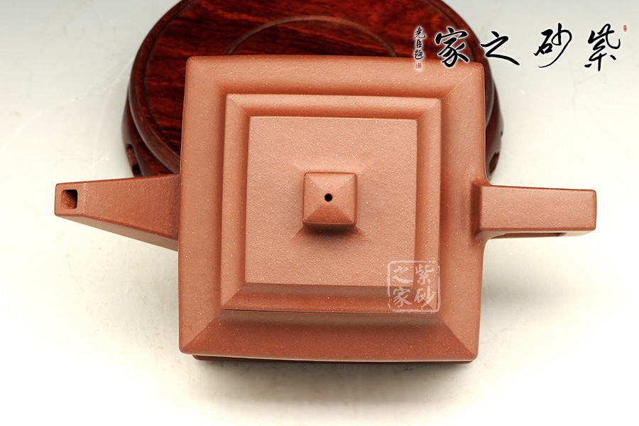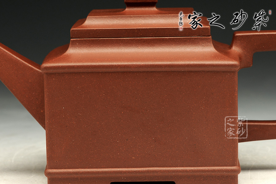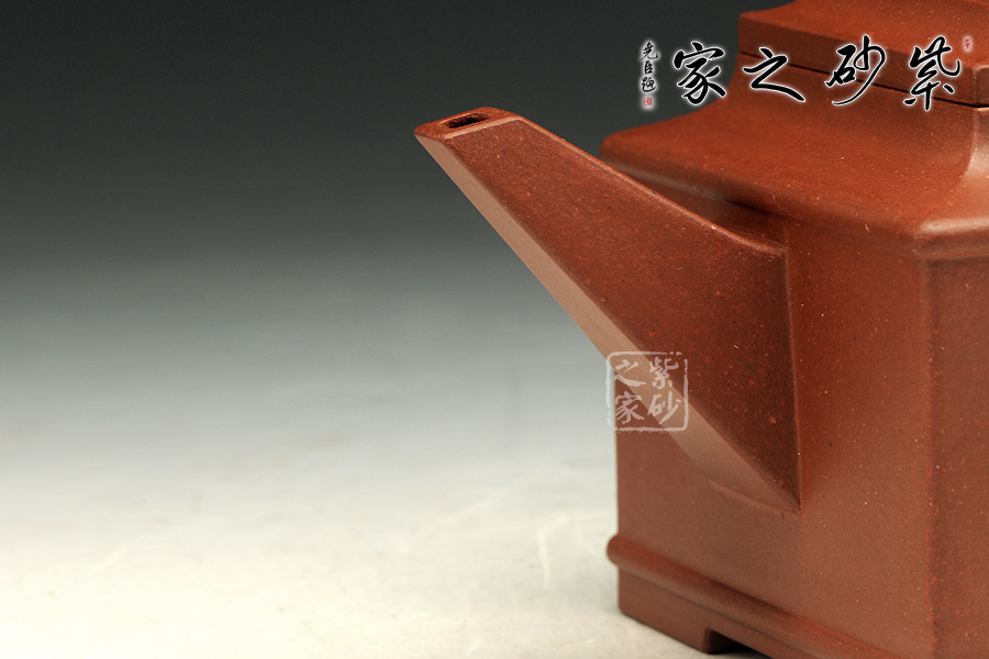 此款雅方整體造型比例協(xié)調(diào),線面挺括有力,輪廓分明,全器氣勢(shì)挺拔,英姿颯爽,成就紫砂方器之美,同時(shí)演繹著光素器的獨(dú)特魅力。四方壓蓋,方磚壺鈕,磊落大氣。方鈕、方把、方嘴,嘴流輸出強(qiáng)悍,由粗變細(xì),直挺有力。壺把規(guī)則四方挺括,氣勢(shì)宏大,立體感極強(qiáng)。整把壺線條挺括,折角交代清晰,面線結(jié)合爽利。是方器中難得極品。