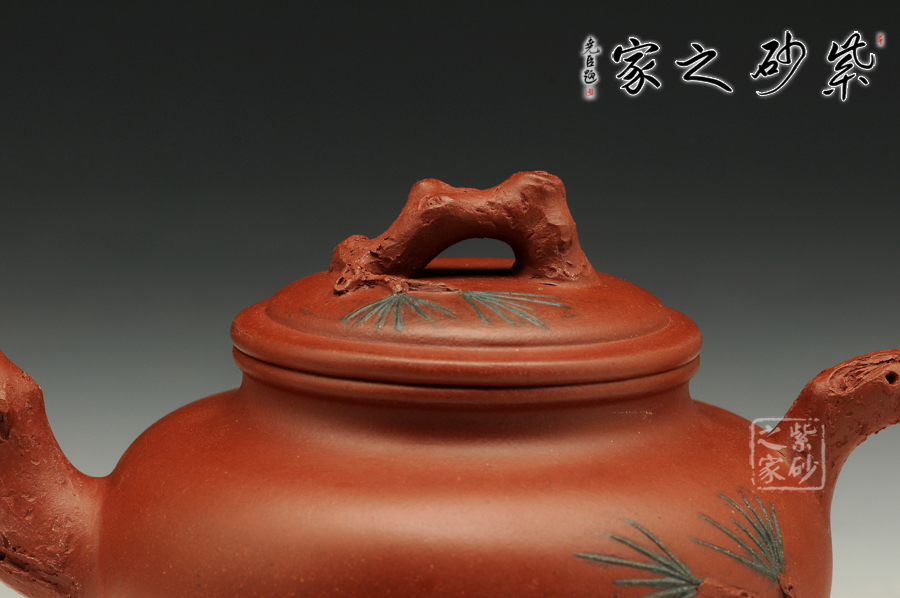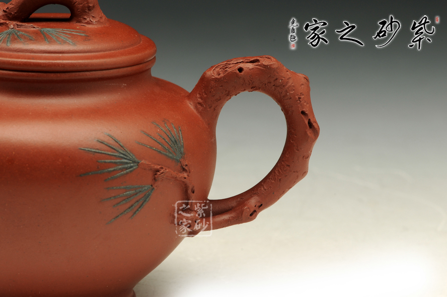 壺嘴壺把是松樹藤,老味橫陳,貼花松葉又精致美妙。