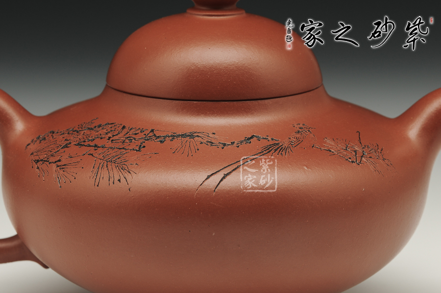 精選原礦朱泥泥料制成的此壺,泥質醇厚,色澤古穆,古韻悠然。