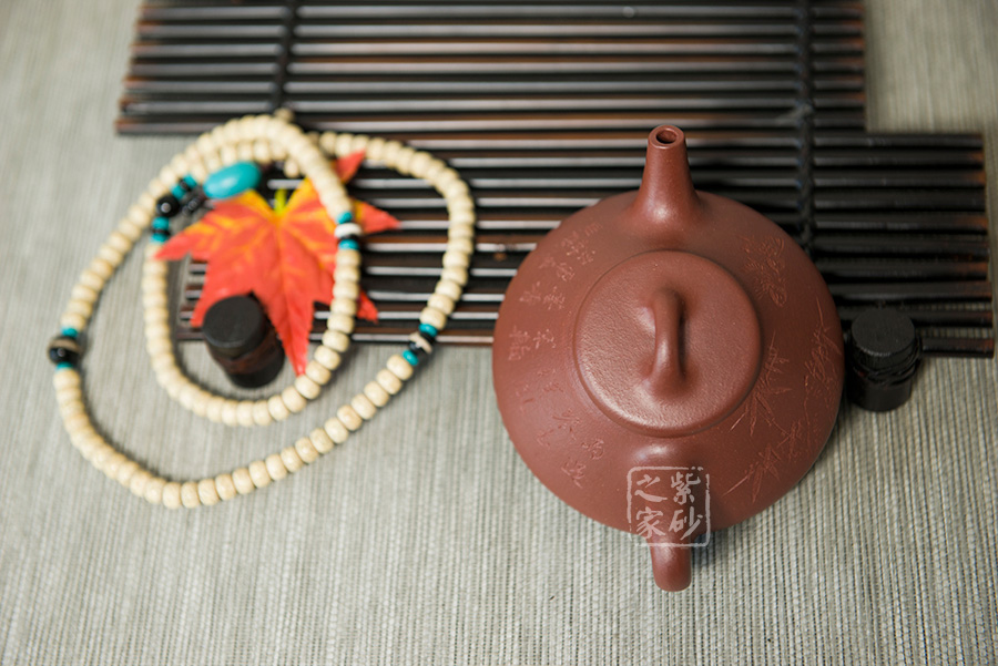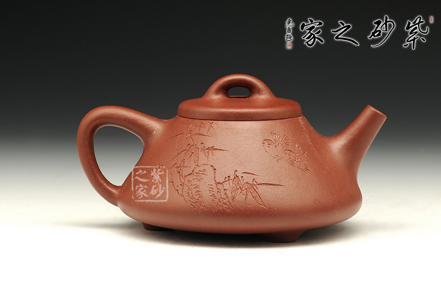 朱泥含鐵量多寡不等,燒成之后變朱砂、朱砂紫或海棠紅等色,熱水沖淋立展嬌嫩鮮紅特色,壺身游移紫光顯現(xiàn),神秘迷人風(fēng)韻令愛(ài)壺之人神醉;有些朱泥含鐵很高,燒成溫度稍高,就會(huì)有鐵質(zhì)析出,出現(xiàn)鐵熔點(diǎn),這樣的泥料顯得格外富有質(zhì)感。
