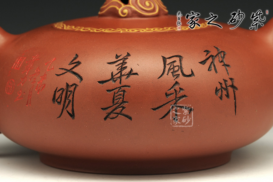壺的點(diǎn)睛之處便是紅珠壺鈕,紅鈕猶如一輪東升的旭日,通紅的朝陽(yáng)