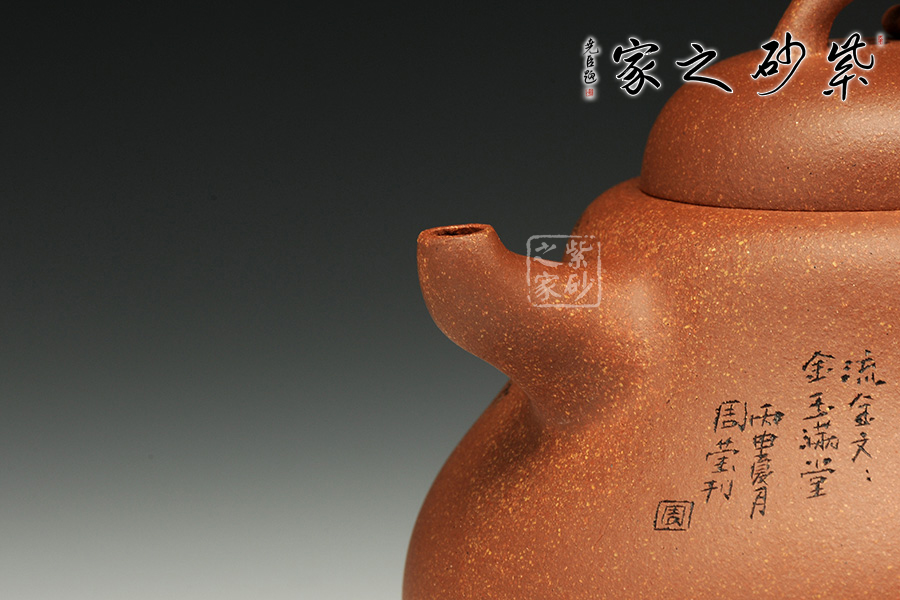 泥性:原礦因含緞泥、紅泥、紫泥等諸多共生礦,陶之后,于深沉之“橙紅色”底上,滿佈五彩斑斕的粗細、深淺之紅、黃星斑點。