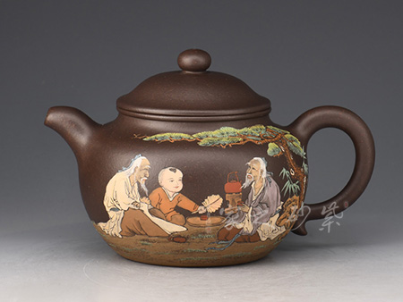 紫砂加彩藝術(shù)傳承了幾百年,自清朝開始,一些制陶藝人與景德鎮(zhèn)陶瓷畫師合作,專為皇帝制作紫砂加彩和琺瑯彩藝術(shù),談?wù)勚两?,給紫砂史上留下輝煌的一筆。紫砂古樸厚重與陶瓷彩繪藝術(shù)完美結(jié)合,而凸顯出它的靈巧與現(xiàn)代意蘊(yùn)。彩繪藝術(shù)更加具有深厚的傳統(tǒng)文化內(nèi)涵。兩者相輔相成,相得益彰,將紫砂藝術(shù)提升了一個更高的藝術(shù)境界,然而紫砂加彩藝術(shù)一直得到愛壺收藏者的青睞,如今紫砂加彩藝術(shù)新穎在紫砂行業(yè)中脫穎而出。