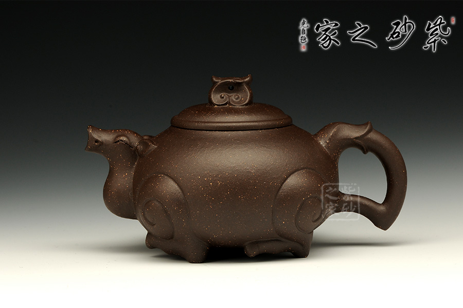 喜獅為鼎足寓福,面目張揚(yáng)非常古樸。壺身鼎形寬闊端正,讓圓潤的外觀中有淡定氣質(zhì)。平蓋設(shè)計,鏡面之中一顆如意紋壺鈕,端的是圓潤飽滿,光彩照人。鹿形壺嘴寓祿,粗細(xì)過渡,嘴口平整,樸雅有趣。