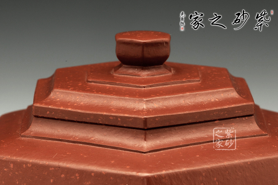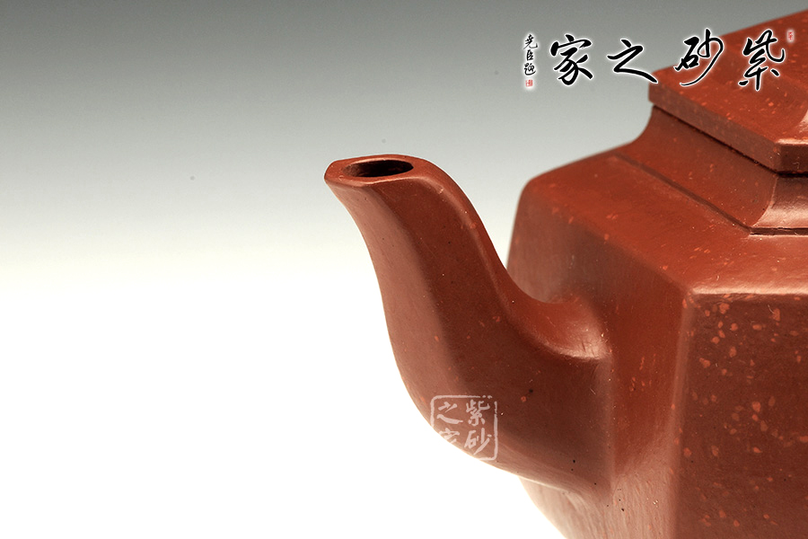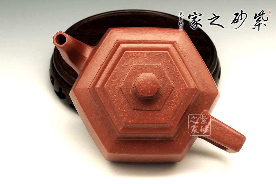 此款小雪華壺將經(jīng)典再現(xiàn),小品方器盡顯玲瓏之態(tài),蓋面重疊六方形,六方蓋鈕與壺身相似,壺腹下內(nèi)收,六方加底,整體造型,折肩以上刻劃較細(xì),俯視可看出六個方形層層疊加,壺身較為簡單,可形成對比;嘴、鈕與把三點(diǎn)一線,嘴型呈六方,又彎曲有度,三彎古拙韻高;把呈四方,轉(zhuǎn)折有力度,端握舒適稱手;壺鈕呈六方蓮子形狀,吉祥如意;整個壺型輕薄飽滿,做工細(xì)致,方雅而不失靈氣,不禁讓人想起漫天飛舞的輕盈雪華,美麗動人。