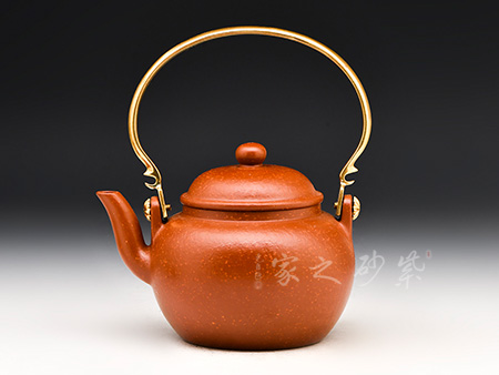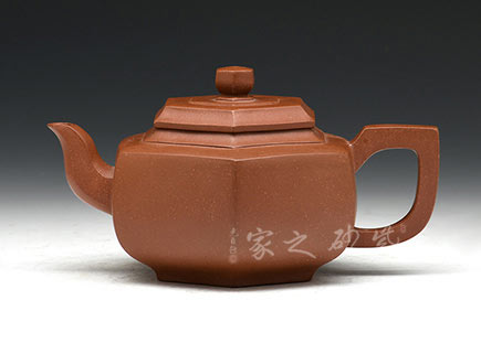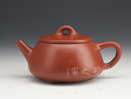 朱泥是原礦呈金黃色或淺黃綠色的紅泥,明代稱“石黃泥”,清代稱“朱泥”。原礦深埋于宜興丁山鎮(zhèn)趙莊山嫩泥礦層的底部,外觀呈咖啡黑色,煉制成泥后稱“朱泥”。用熱水沖淋朱泥壺,立展嬌艷的鮮紅色,氤氳中有紫光游移,泡養(yǎng)包漿后紅色沉穩(wěn)。