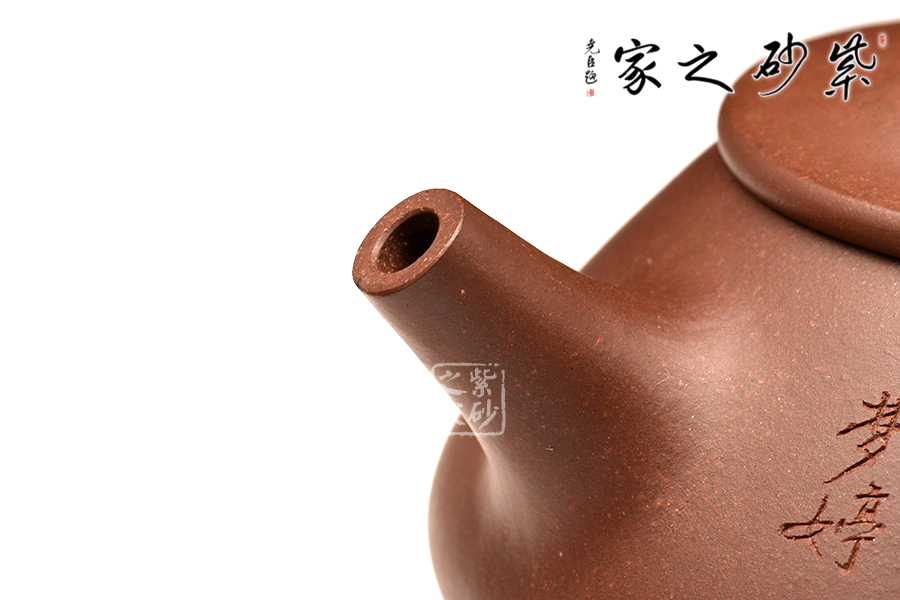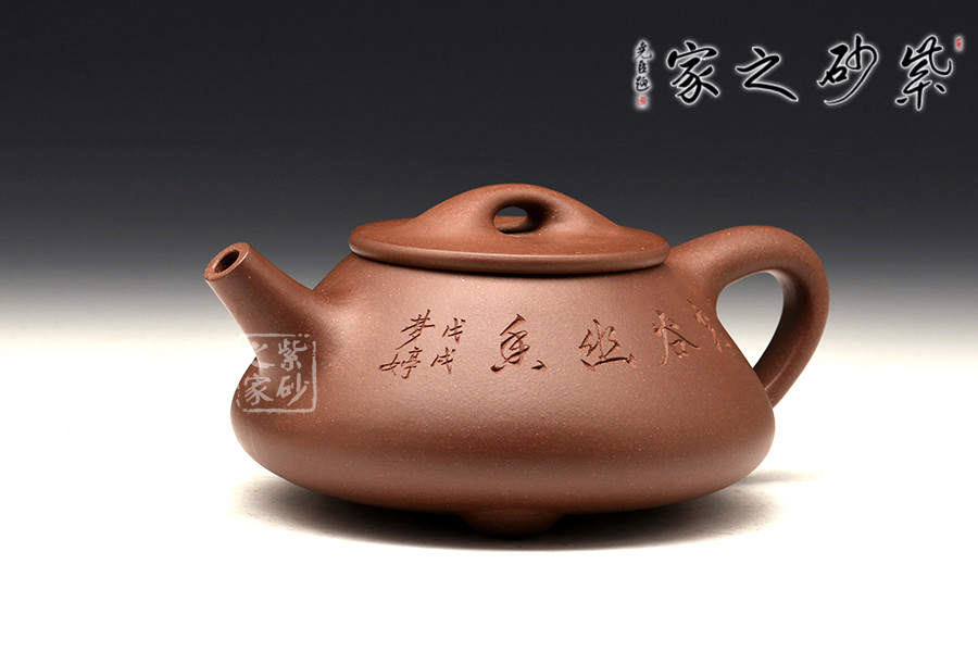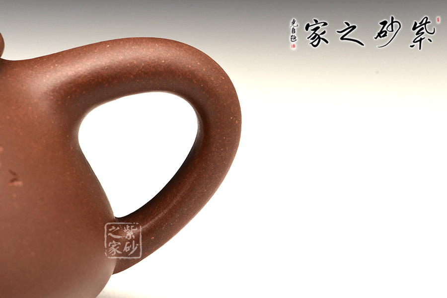 石瓢壺,造型、線條特別是韻味極難把握,三角形結(jié)構體現(xiàn)了一種陽剛之美,其橋鈕、弧面、釘足則體現(xiàn)了陰柔之美,從壺底到橋鈕,成為立體而圓滿、完整的造型。所謂柔中帶剛,是石瓢壺非常顯著的特色,也是受到壺友歡迎的重要原因。