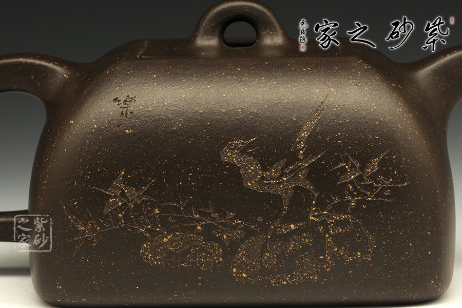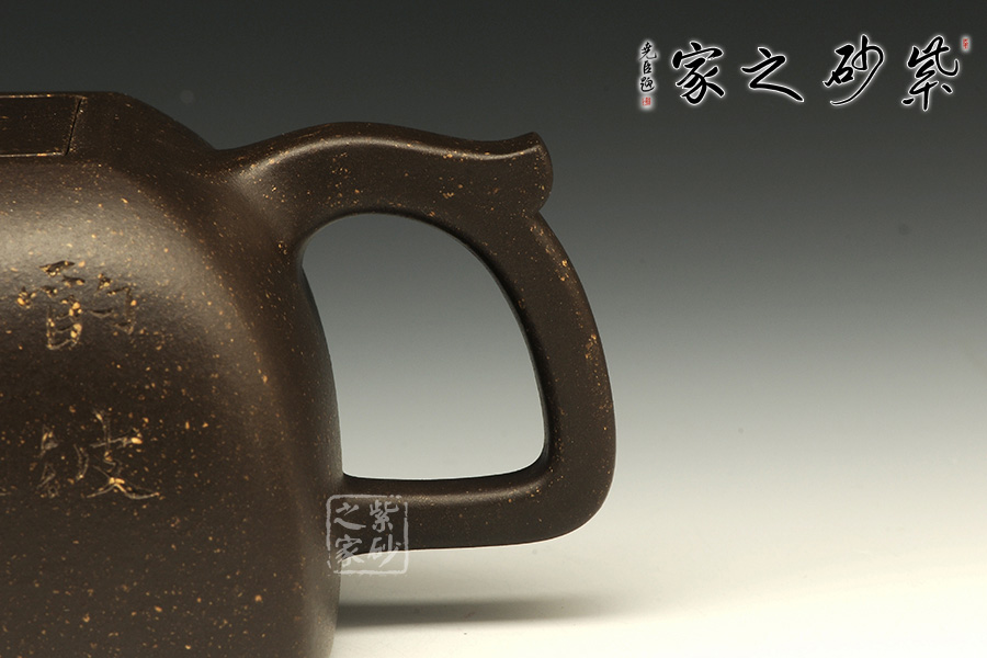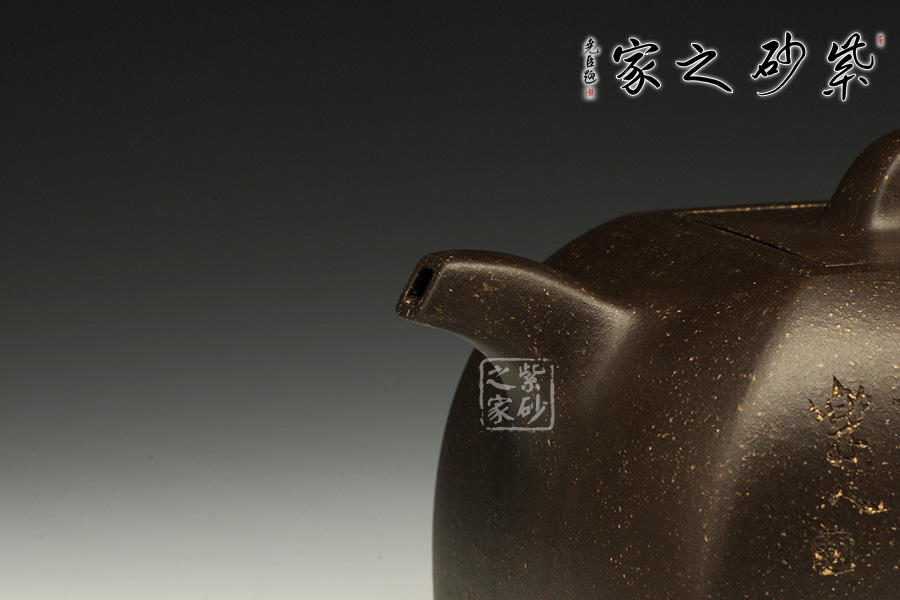 壺體周身皆由弧線構(gòu)成,線條圓融有力,簡(jiǎn)潔明快。壺身沉穩(wěn)而不凝滯。別有一番風(fēng)味。斜斜向上的管狀流和中心略為下沉的環(huán)形把,前后呼應(yīng)。壺嘴略微短小,齊整干凈,出水暢快,斷水不滴。