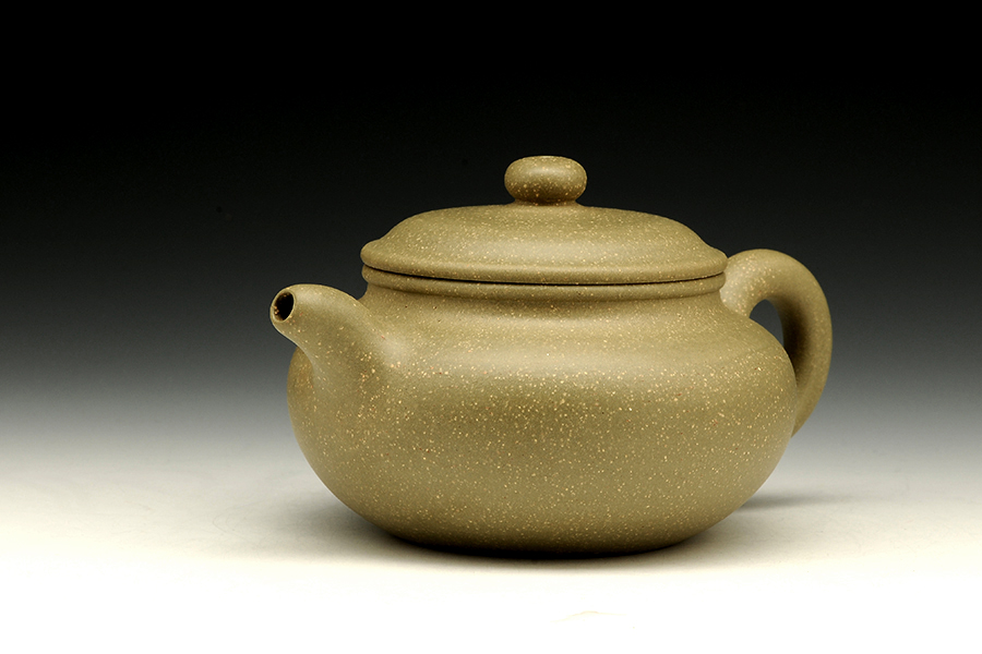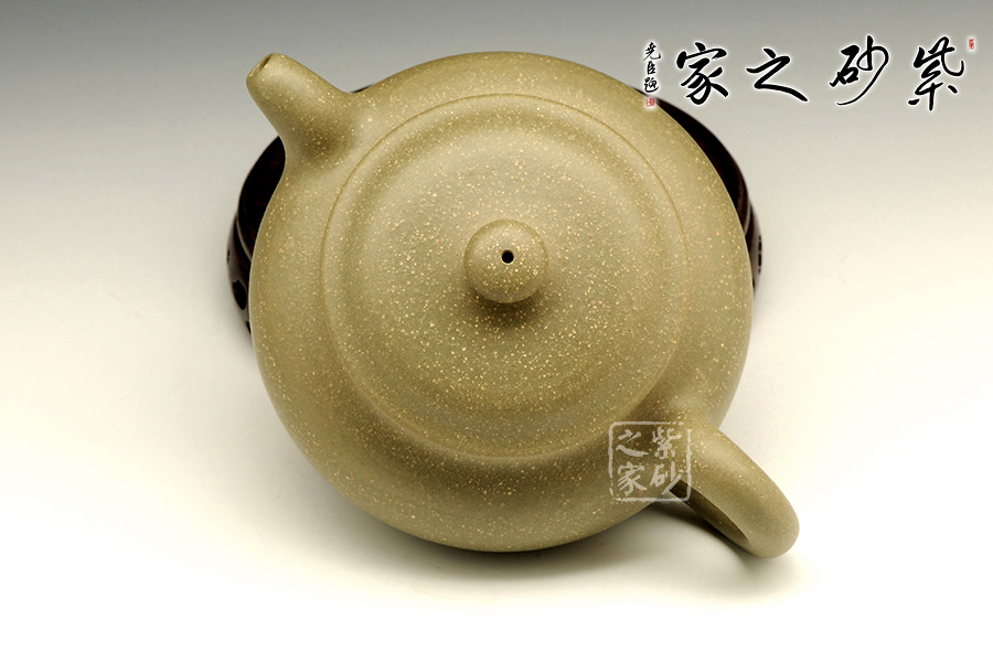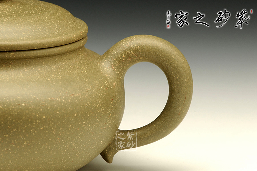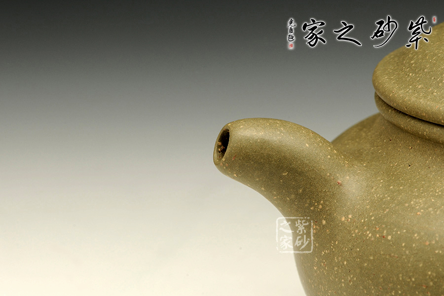 此壺為傳統(tǒng)器形仿古壺,蓋板平滑,壺蓋與口沿子母線吻合嚴(yán)密,合成圓線飽滿,扁鈕有力,彎流胥出自然。獨特竹葉青泥料,細(xì)質(zhì)細(xì)膩手感極佳。全手工的制作技藝將砂壺的精氣神表現(xiàn)得十分到位。器身泥質(zhì)均勻,捧在手中把玩,古韻十足。