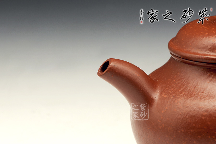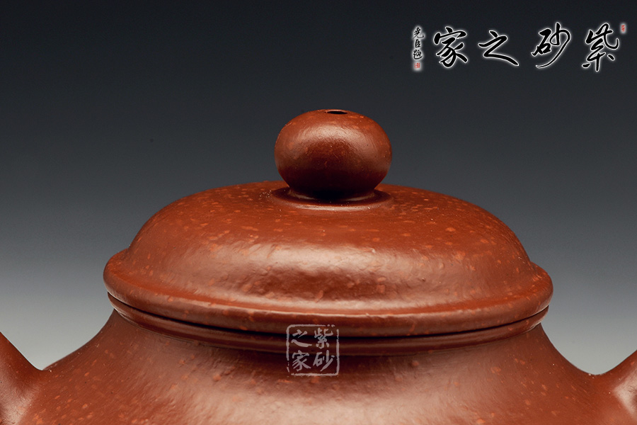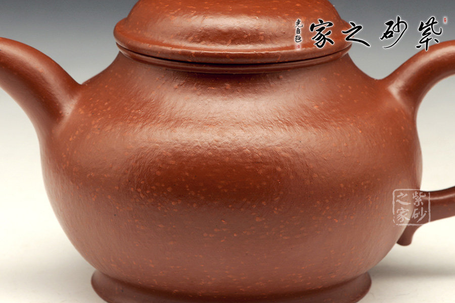 魚籽砂泥料顆粒明顯,是在上世紀90年代練成的泥,選用原礦大紅袍朱泥,30目砂陳腐了二十多年,紅底映紅砂,是泥料中的極品。