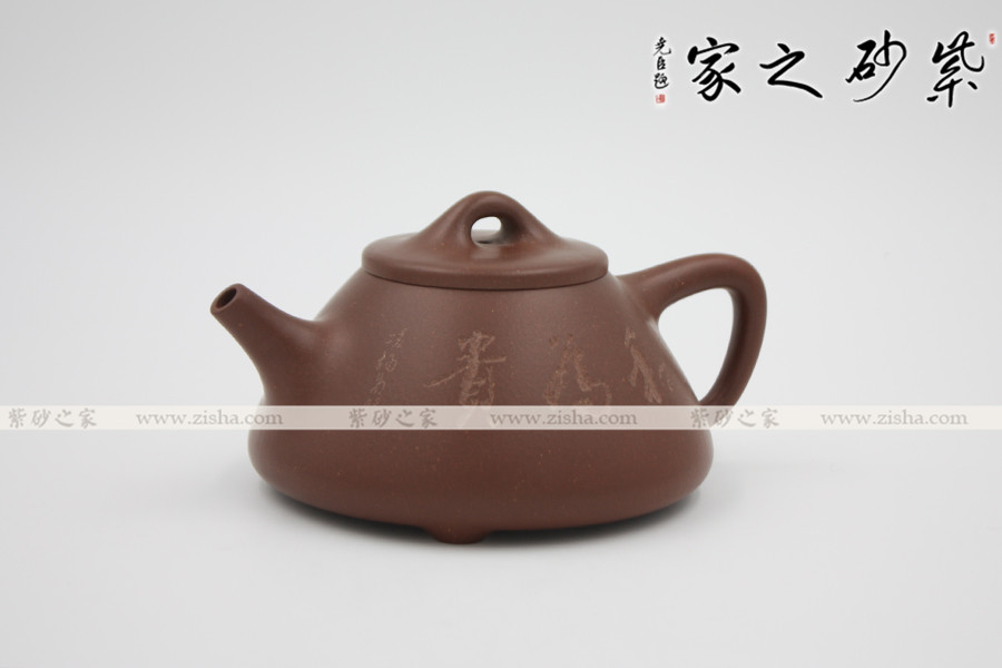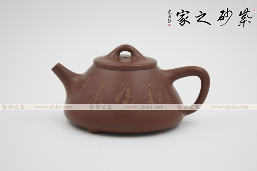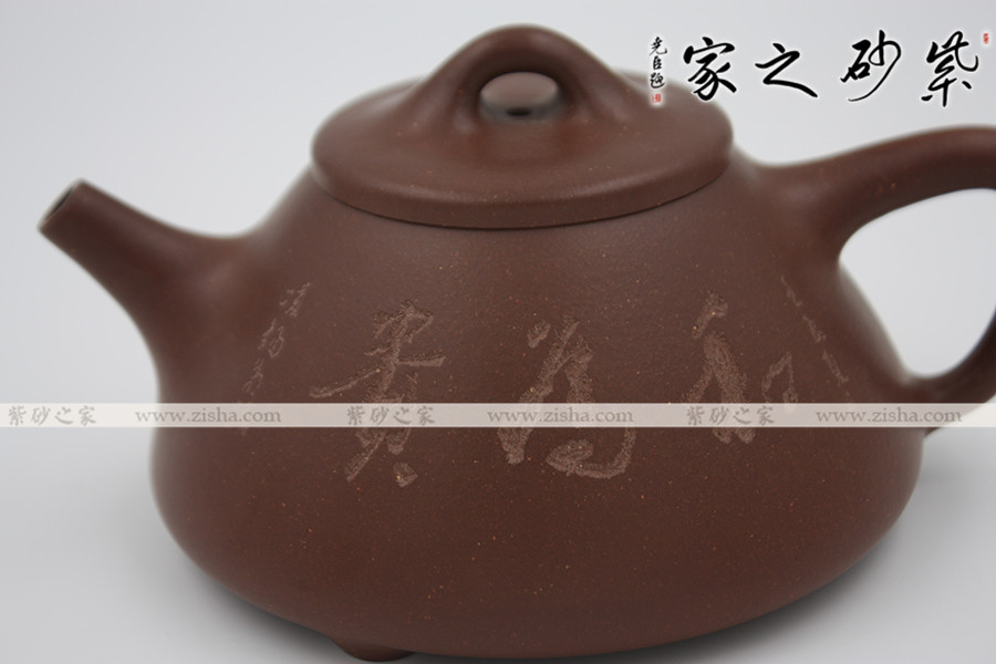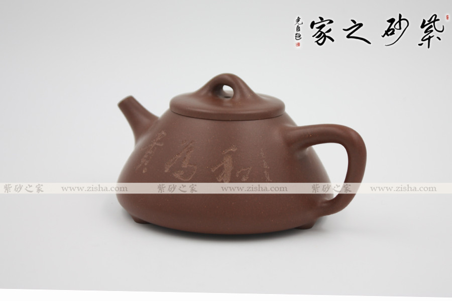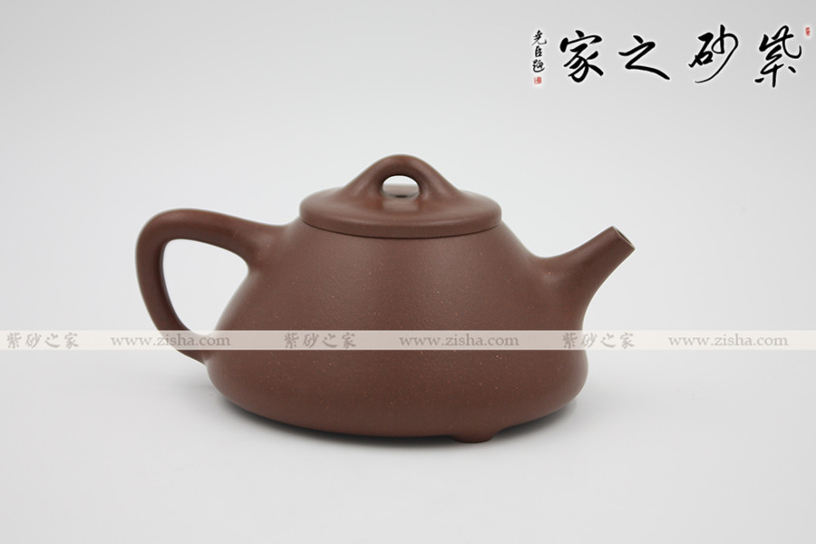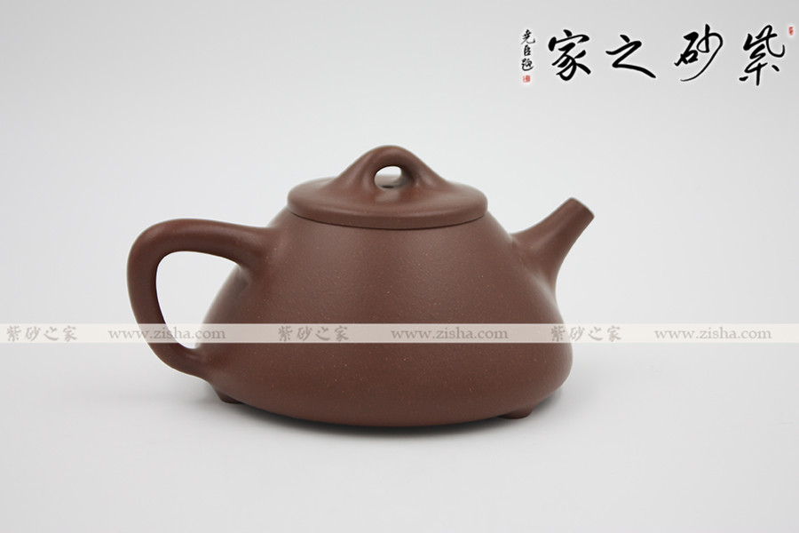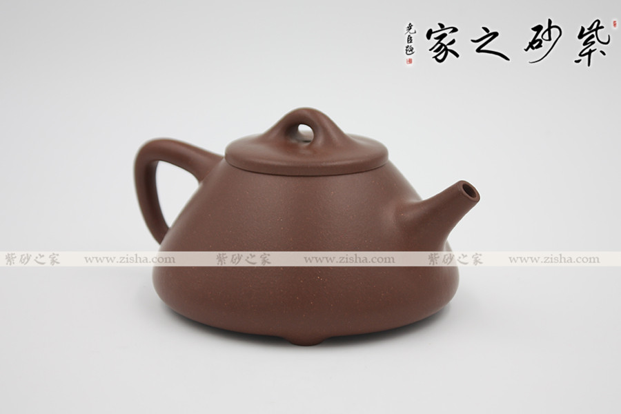 此壺為經(jīng)典的石瓢造型,此壺下大上小呈三角形,周身皆以圓弧線條構(gòu)成,流、把、鈕處處銜接自然流暢,線條清爽利落,起承轉(zhuǎn)合自如得體。壺嘴、壺把、壺身三位一體。底部三圓足立起全身,使壺顯得挺括有神,展露出一種大氣風(fēng)范。