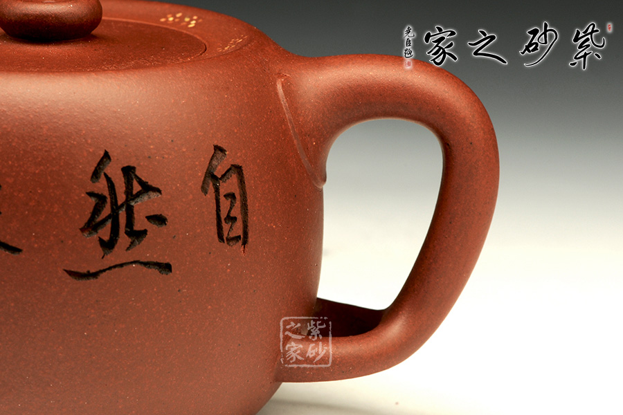 此壺造型古樸,沉穩(wěn)內(nèi)斂,粗礦的泥質(zhì)給人一種憨厚自然之感。大肚圓融的壺身,線條飽腹,獨(dú)以養(yǎng)韻。配以短流厚重的壺嘴以及肥端的壺把,更添一份憨然可掬。壺蓋造型別致,內(nèi)凹,大口。泡茶品茗,自有玩味!