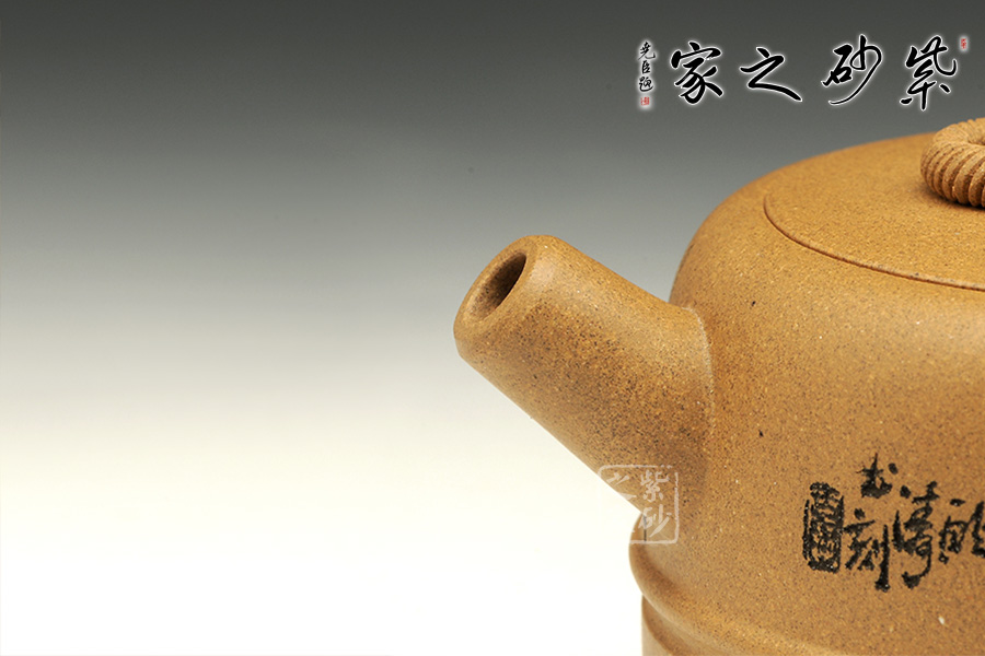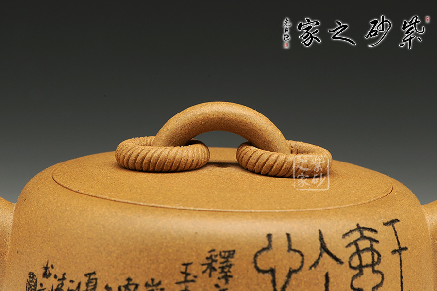 此壺色澤上多了幾分素凈,隱約可見泥料中不同色澤的砂粒,因此壺身散發(fā)著氤氳的光芒,似流光游動。整器圈鈕、短流、嵌蓋、矮身筒、耳把,這些部位的形狀與銜接顯得完美無缺,相得益彰。