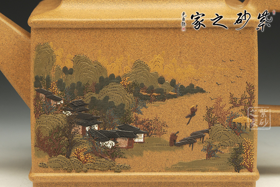 泥性:感甜嫩綿密,質(zhì)堅(jiān)而溫潤(rùn),呈近田黃色調(diào),為江蘇宜興趙莊山系朱泥礦~黃石黃之共生礦,經(jīng)挑揀練製而成,因含鐵量只達(dá)6%左右,致陶之后呈“金田黃色”。