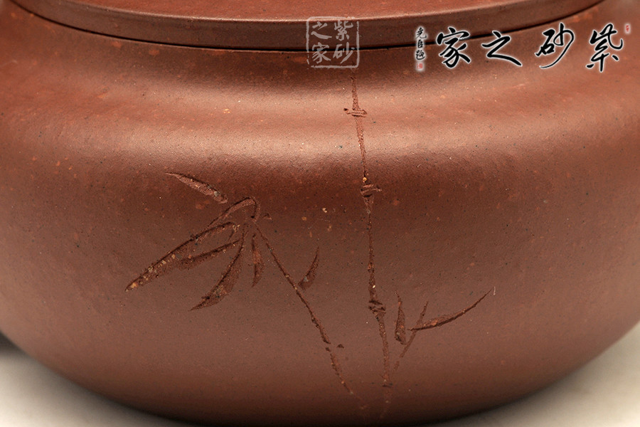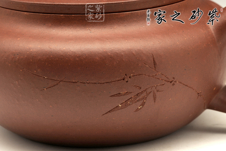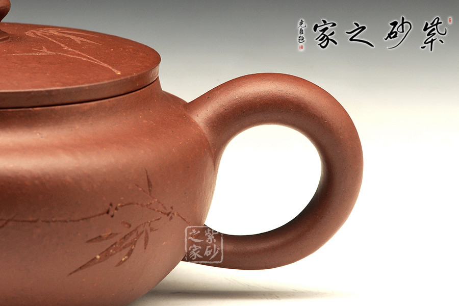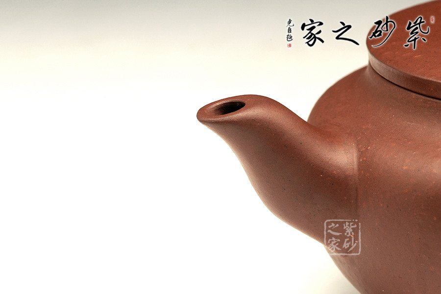 此壺線條清晰簡(jiǎn)潔,大方明確,扁圓鈕用細(xì)膩的線條勾勒,與蓋渾然一體,整個(gè)壺在扁圓中富于韻味,壺流自壺腹胥伸自然,把高圓潤(rùn)下留垂耳,與流對(duì)應(yīng)稱(chēng)勢(shì);壺肩提攜神韻,角圓,變化中求統(tǒng)一,以求完美,加之粗砂底槽清為料沉默內(nèi)斂、雅俗共賞。