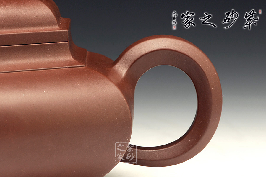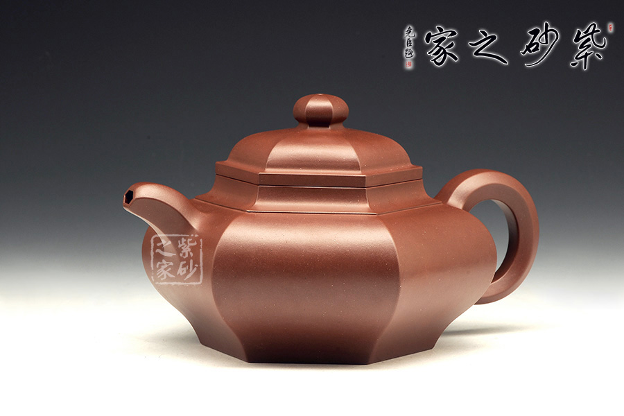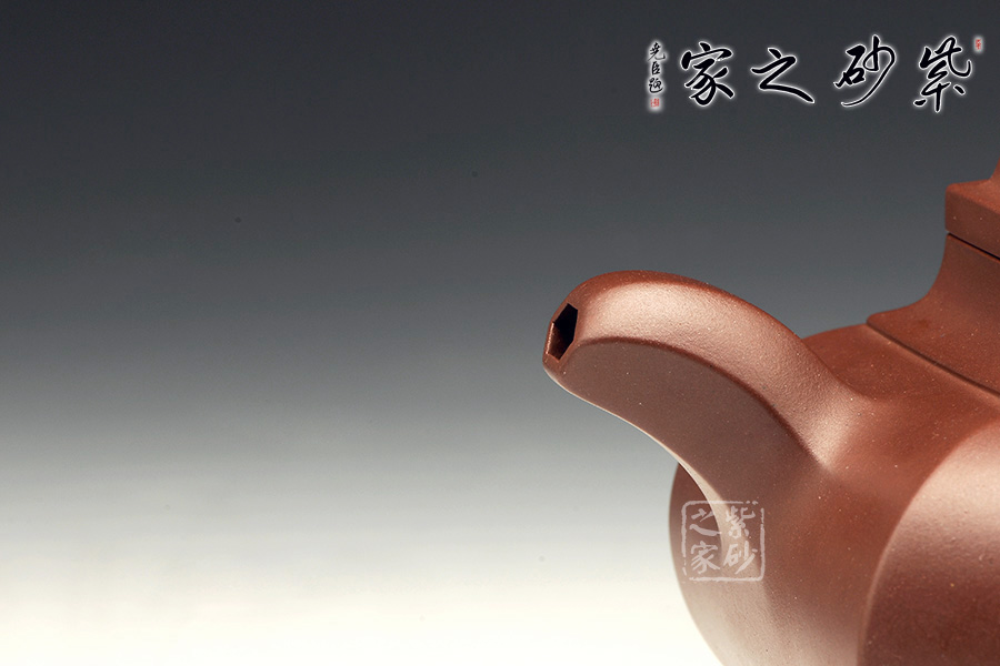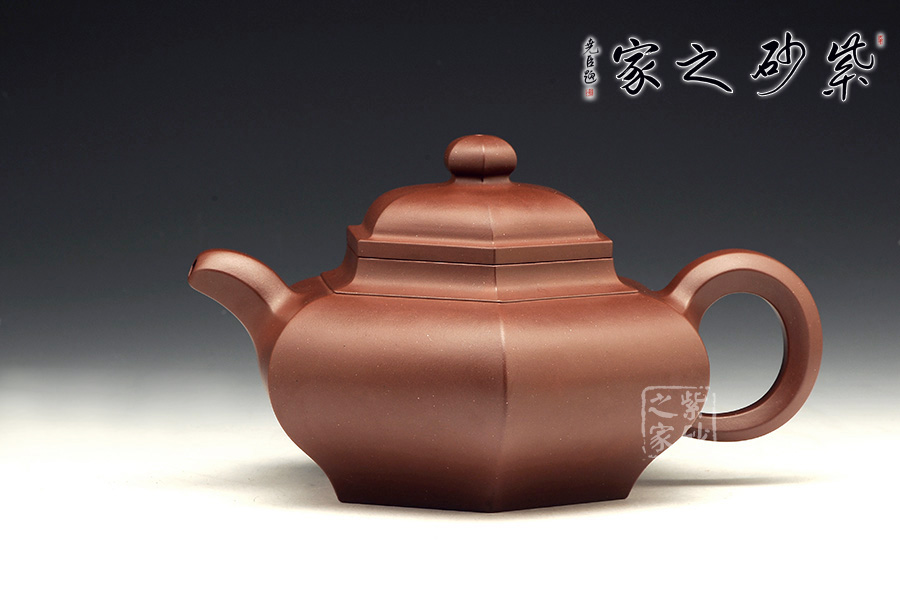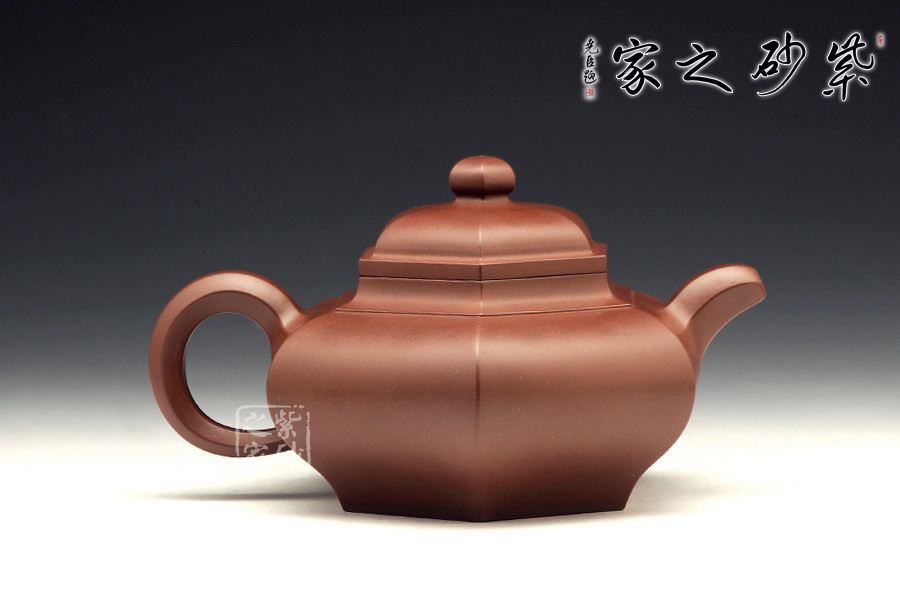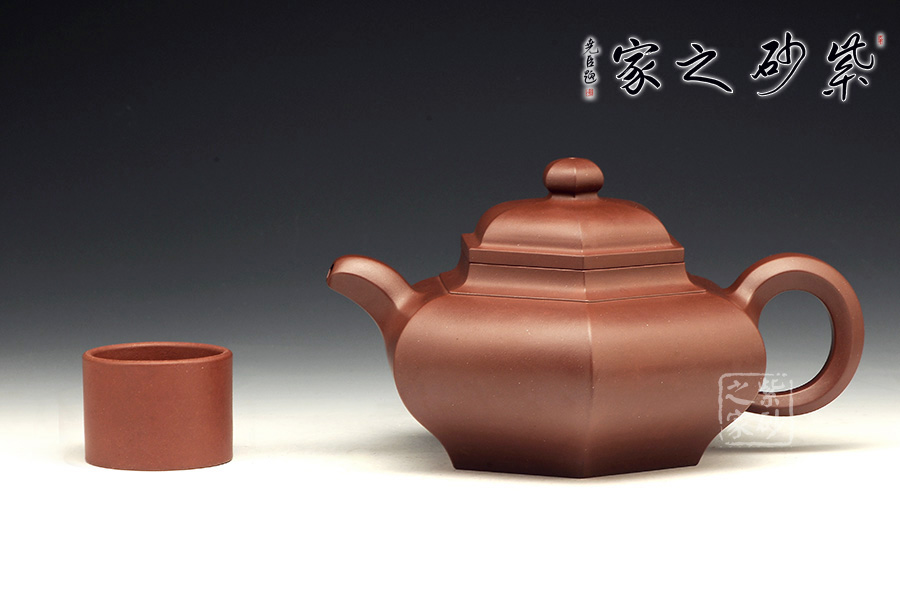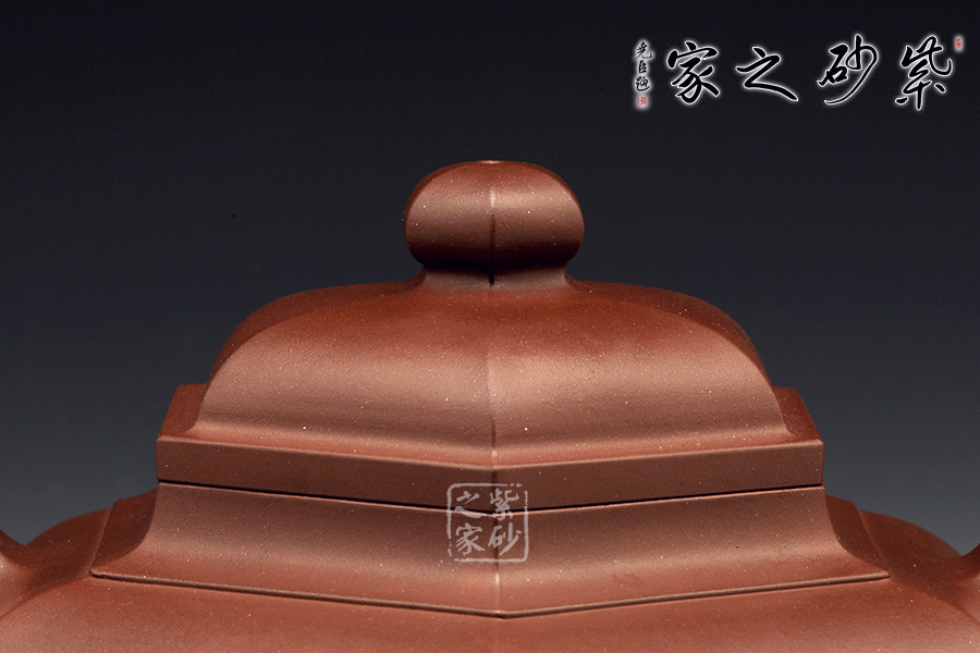 六方形壺身工整美觀,從上面看,每一面都非常平整,六個(gè)面大小長(zhǎng)短都尤其勻稱。自壺身到壺蓋,再到壺鈕部位,正好是三層六邊形,由大到小,變化層次感分明。側(cè)面來看,壺身扁且端正,氣韻不俗。彎流壺嘴和環(huán)形把對(duì)應(yīng)成趣,利落中透著不盡的工藝氣息。