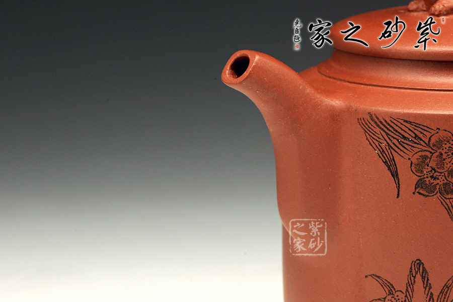 作品輪廓清晰,線條流暢;壺鈕為柱形,精氣神十足;壓蓋,蓋形吐出飽滿;壺嘴自然上揚(yáng),傲然挺立,出水流利;壺把粗細(xì)得當(dāng),壺腹處整體壺型下沉,盡顯雍容富態(tài);該作品整體造型端莊,構(gòu)思奇特,施藝精致,壺的各部位比例恰當(dāng),潤厚,以手撫之有質(zhì)感!