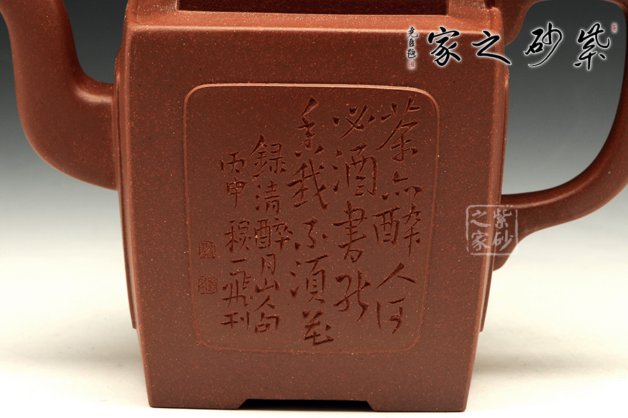 2000年創(chuàng)辦個(gè)人“茗壺精舍”藝術(shù)館,茗壺精舍藝術(shù)館廳堂陳設(shè)一件碩大“缶緣風(fēng)水尊”就出自劉老師之手,應(yīng)屬老師代表作之一,此“尊”是老師親手歷經(jīng)酷暑純手工制作并裝飾而成的,創(chuàng)作此“尊”是專為徐悲鴻大師“愚公移山圖”為主題創(chuàng)作設(shè)計(jì)的,裝飾手段:陶刻、泥繪相結(jié)合的技法。在陶刻后的坯體上又以不同顏色的紫砂泥作為顏料進(jìn)行著色,經(jīng)高溫?zé)坪笥啦煌噬?。以紫砂泥作為顏料?shí)際上是很難把握的,沒有多年經(jīng)驗(yàn)積累是不可能的,因?yàn)樽仙澳嘣跓盁笊詈艽蟮?。正面“愚公移山圖”栩栩如生,反面老師自撰銘文以犀利的刀法鐫之,把悲鴻大師的力作以另一種藝術(shù)形式再現(xiàn),壯哉!功德無量!實(shí)為重器也!