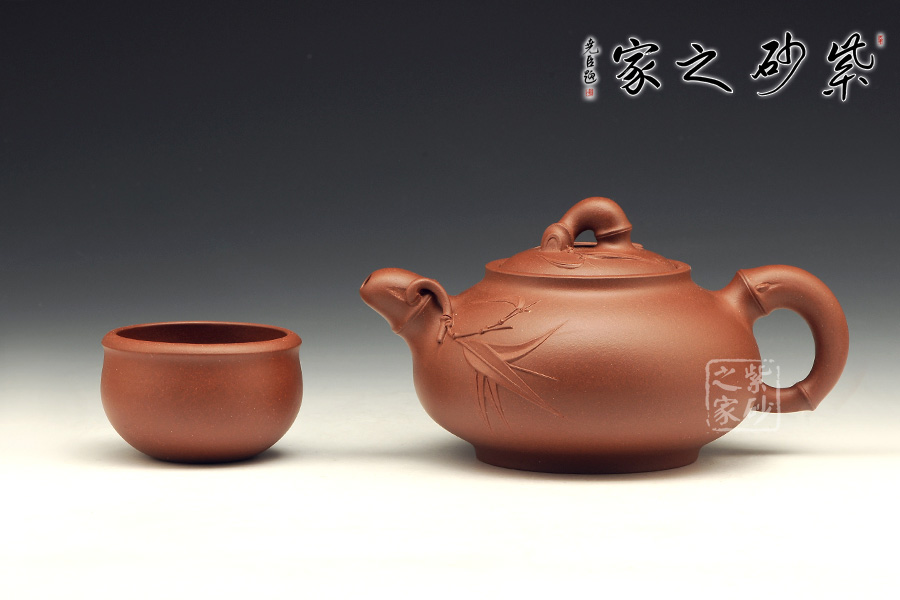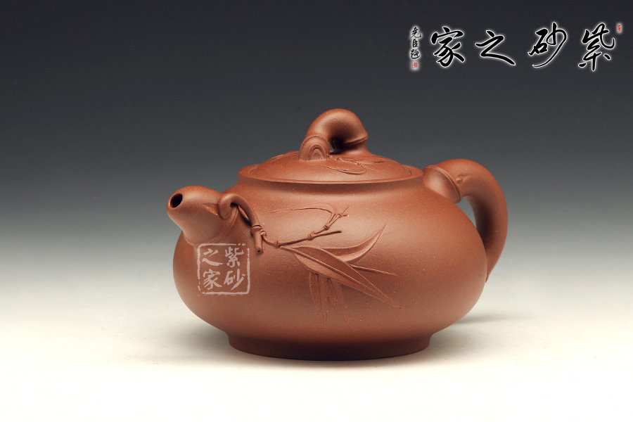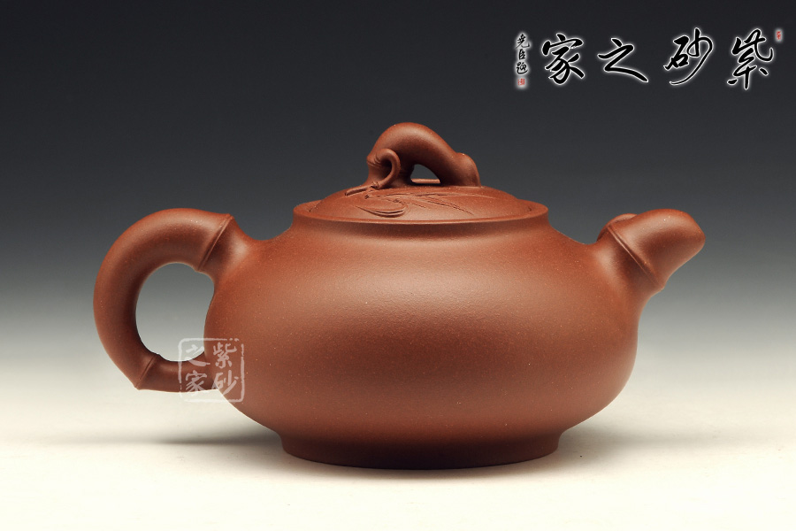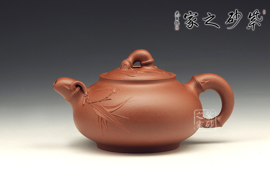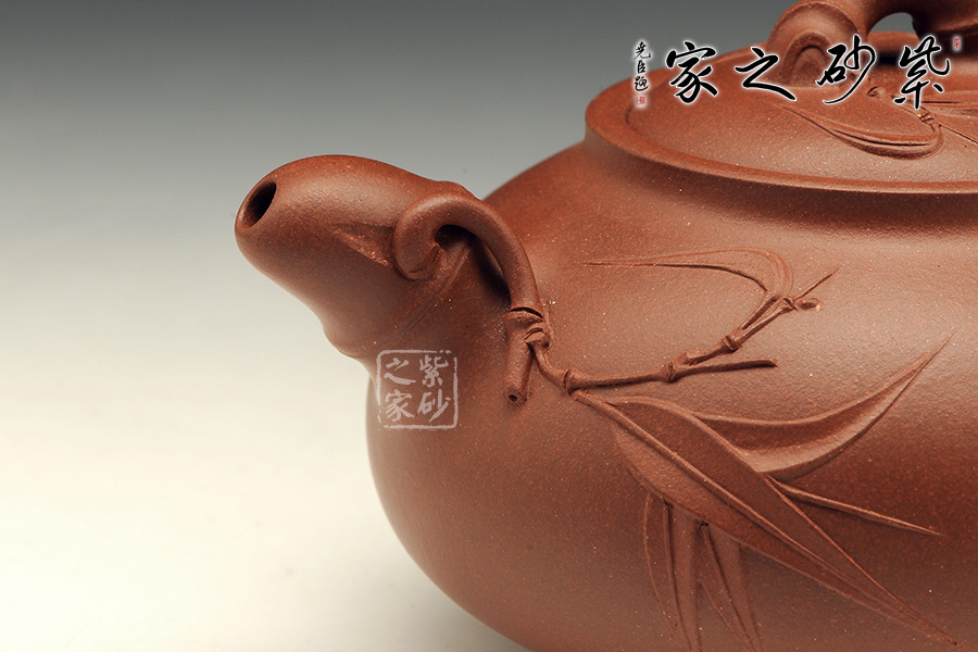 竹節(jié)壺把飽滿短小,竹葉裝飾飄然