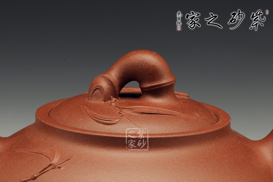 作品融合了中國兩大古老元素,一為中國人最愛的竹,一為古老文化中的鼎,兩者結(jié)合,更令人向往此款作品的真實(shí)內(nèi)涵。選用紅皮龍泥料,作品紅潤飽滿,顆粒若隱若現(xiàn),作品竹節(jié)造型更是將竹的神韻表現(xiàn)出來,隨竹節(jié)裝飾的竹葉隨風(fēng)搖拽,很有動感,整器表現(xiàn)出一種大氣之風(fēng)。