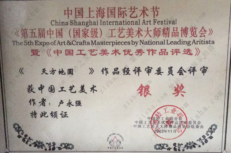 ▼ 2003年第五屆中國(guó)工藝美術(shù)大師精品博覽會(huì)銀獎(jiǎng)!