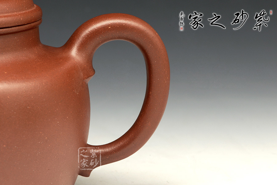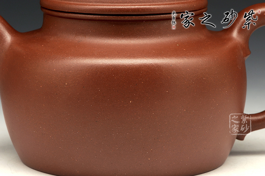 德鐘為經(jīng)典壺型,至今無法超越。短短的圓柱形壺鈕,與壺身一致。壺蓋微微鼓起來,并不覺得飽滿,但是弧形特別明顯。壺口子母線咬合得很緊致,壺友們不必?fù)?dān)心倒茶時茶水溢出;同時這款壺的壺口比較大,茶葉進(jìn)出也很方便。壺肩略微平整,壺頸修長,所以整個壺體并不覺得矮壯,而是集穩(wěn)重和精巧于一體。直流嘴挺出得很爽利,同時圈把闊大,略微見方形,使用起來很方便。