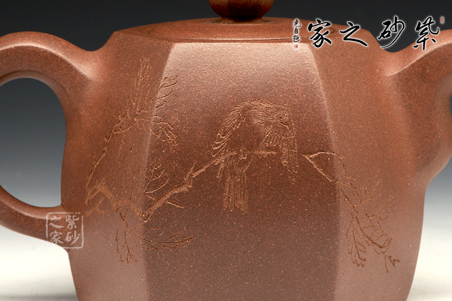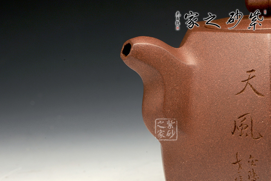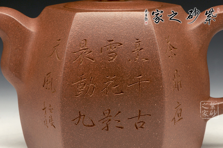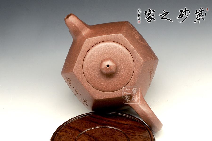 此款六方壺從從線到點(diǎn),從點(diǎn)到面的組合,面面俱到,在工藝上追求完美的境地與效果,在整體上追求剛?cè)嵯酀?jì)的境地和效果,重視線點(diǎn)面整體配合,使得此款作品產(chǎn)生一種中氣十足、神采內(nèi)蘊(yùn)、外剛內(nèi)柔、挺括干凈的精神。