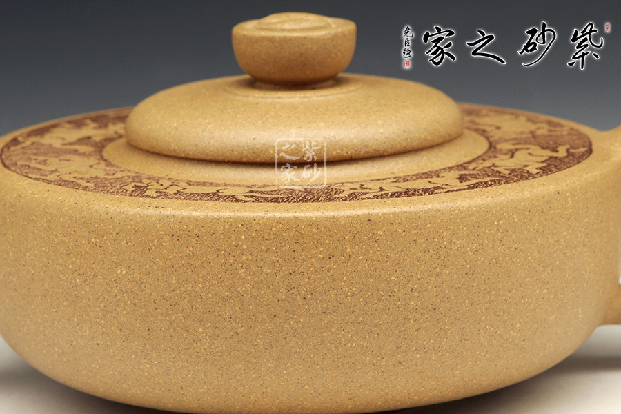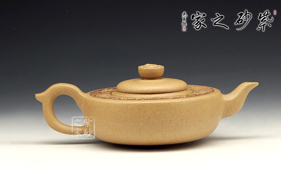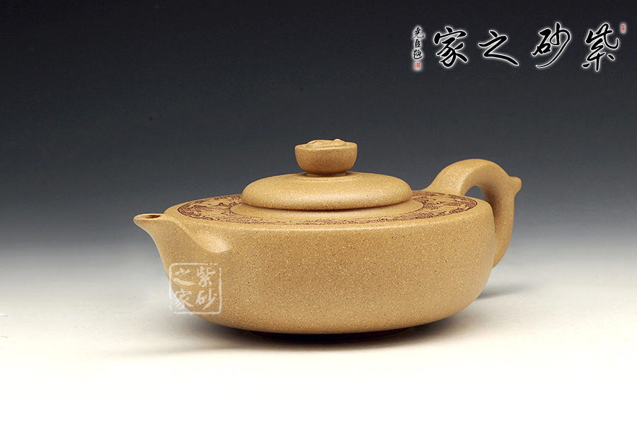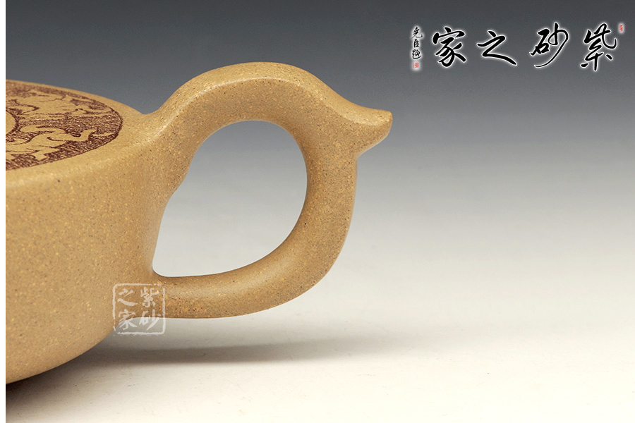 泥性:感甜嫩綿密,質(zhì)堅而溫潤,呈近田黃色調(diào),為江蘇宜興趙莊山系朱泥礦~黃石黃之共生礦,經(jīng)挑揀練製而成,因含鐵量只達(dá)6%左右,致陶之后呈“金田黃色”。