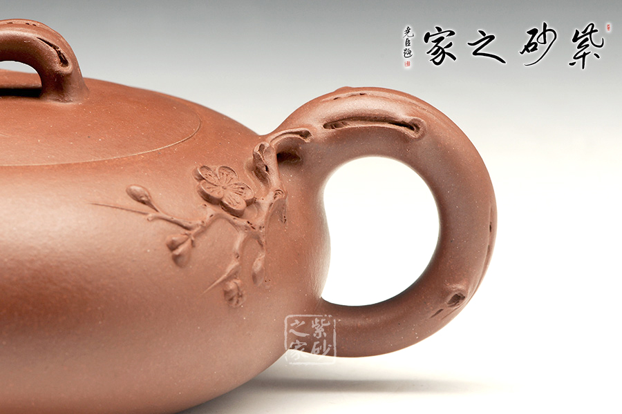 壺身以梅花貼之靠近壺把,更顯得暗香浮動,美麗如斯