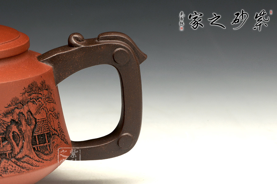 此壺以硬朗的直線為主,挺拔工整,又透出圓潤的溫婉。造型別致,值得收藏!切面平滑,棱角分明。肩部用斜角過渡,壓蓋對(duì)接嚴(yán)密,整體簡潔。柱形壺鈕,壺嘴和把皆以龍形為素,刻畫生動(dòng)形象,相互交映。外觀用切面裝飾,于圓潤里透著工整和老味,意味獨(dú)特。