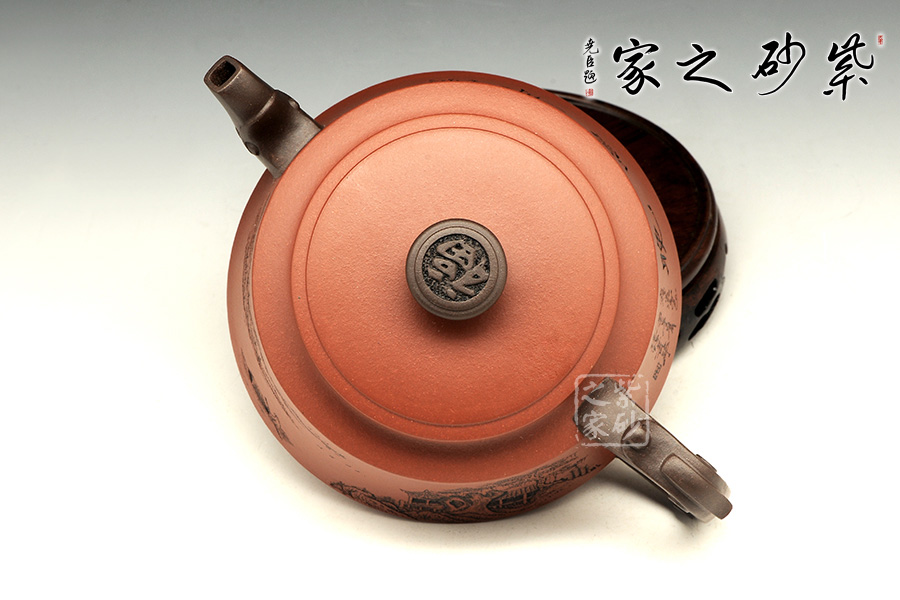 擅于自制自銘,精于雙色泥料制壺,裝飾手法玩裝金銀鑲嵌、堆泥貼花