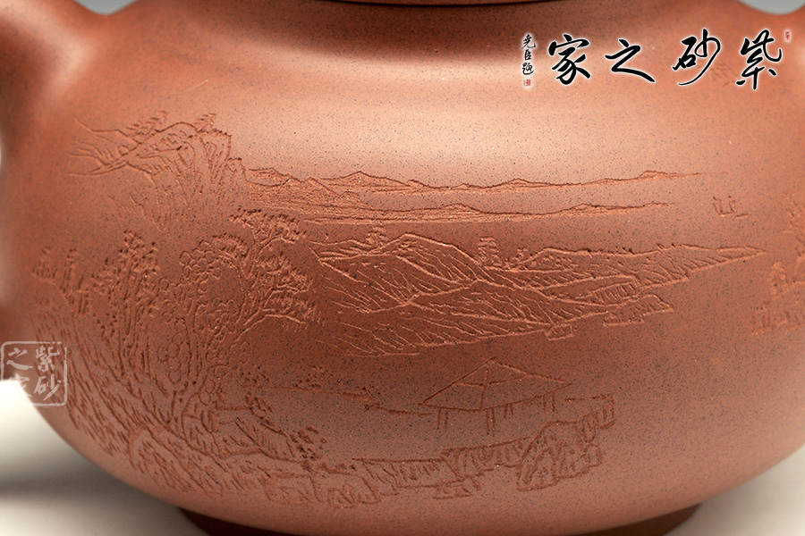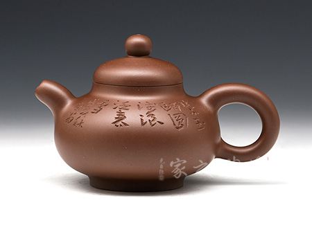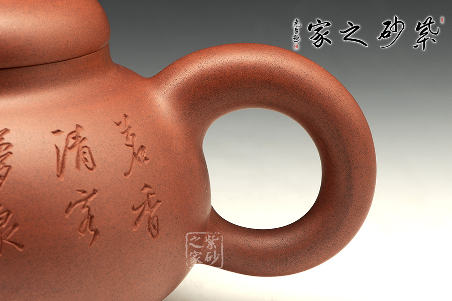 光貨離不開裝飾。俗話說“壺隨字貴,字隨壺傳”:光壺不刻字,就是一把光壺;壺上面刻了大師、名人的字,一把壺的含金量就高了,收藏價值就更高,升值潛力就更大。王福君與中國工藝美術(shù)大師譚泉海合作最多,其次是徐安碧、鮑志強、毛國強(均為中國工藝美術(shù)大師、中國陶瓷藝術(shù)大師)。