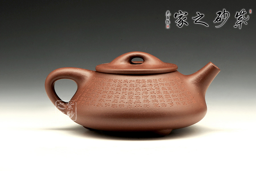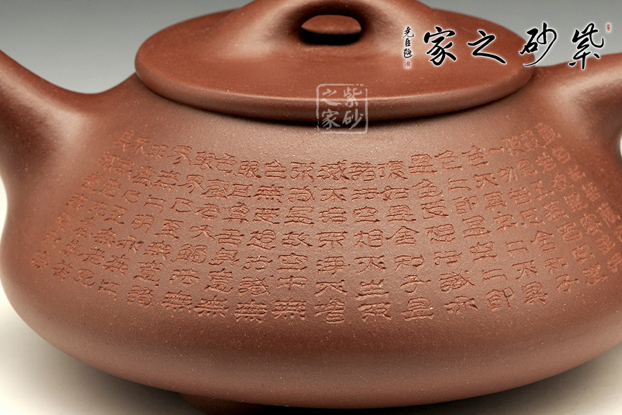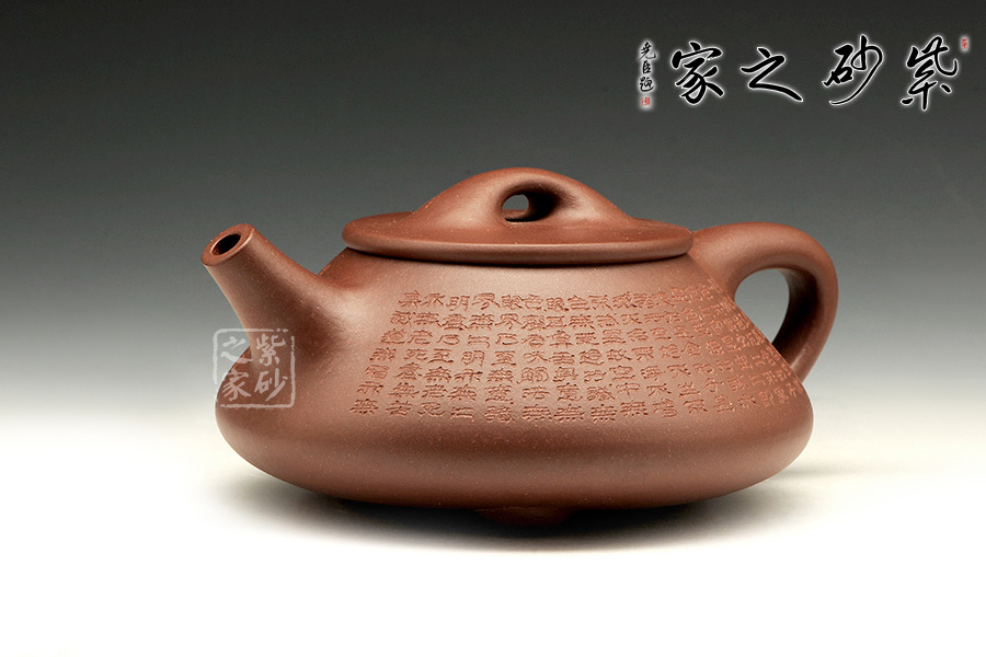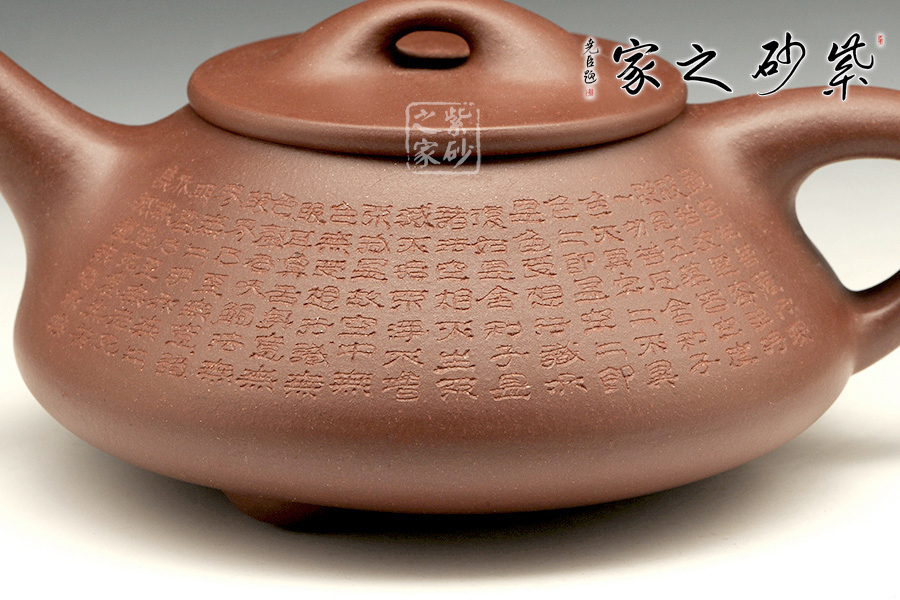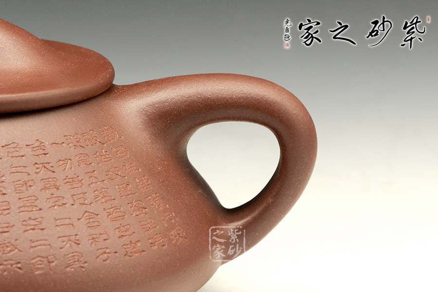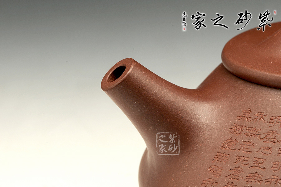 經(jīng)典的石瓢造型,此壺下大上小呈三角形的石瓢形,周身皆以圓弧線條構(gòu)成,嘴、把、的處處銜接自然流暢,線條利落明確,起承轉(zhuǎn)合交待清楚,下以三圓足支起全身,使壺顯得挺括有神,沉靜而深意雋永。暗接直流嘴上翹角度很高出水十分有勁道,三角壺把轉(zhuǎn)折有力,端握舒適,無(wú)處不吐露出渾厚的氣息,更是一種大氣風(fēng)范。