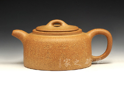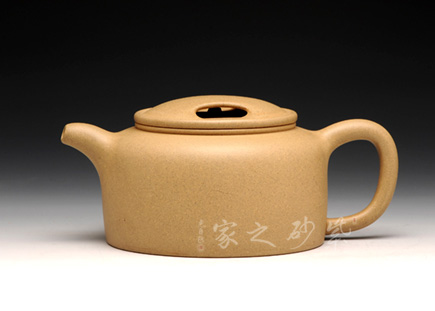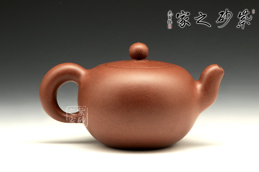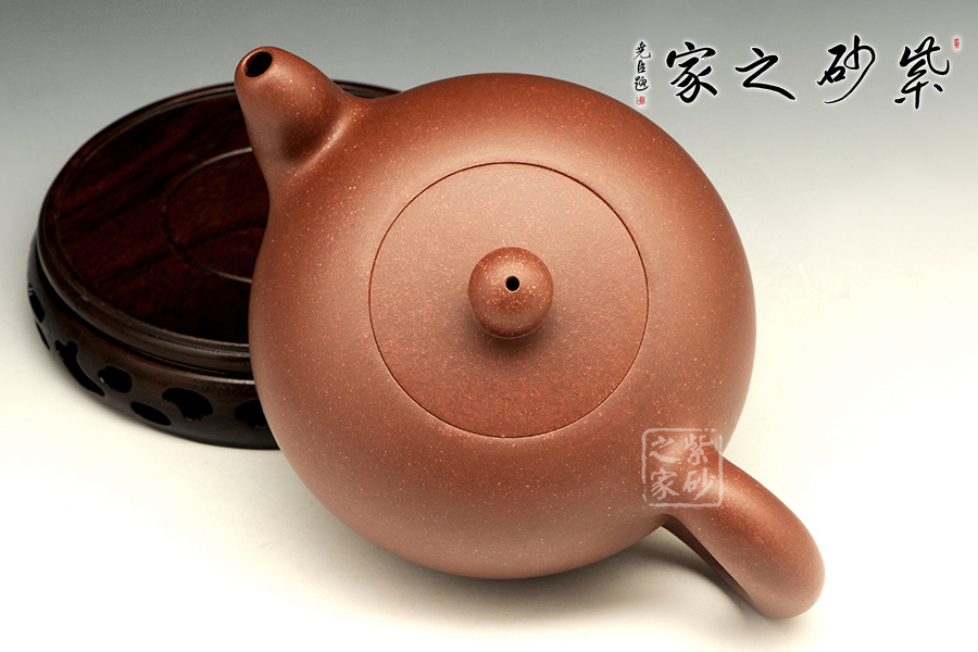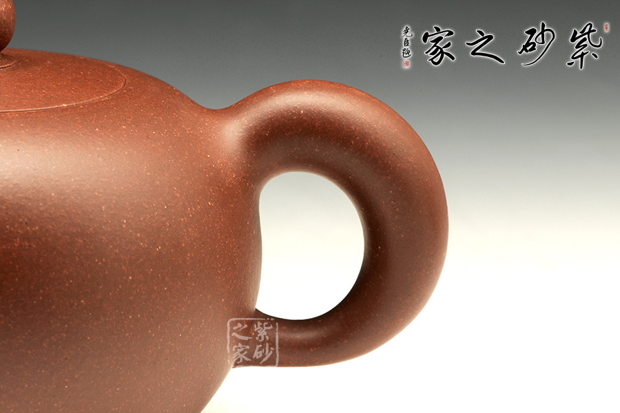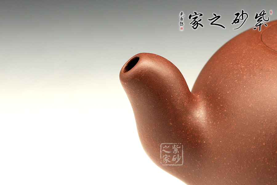 此壺圓潤(rùn)的造型驚世駭俗,飽滿的壺身,密實(shí)而協(xié)調(diào)的嵌蓋將圓潤(rùn)的壺身圓滿意味襯托得淋漓盡致,小小的寶珠壺鈕強(qiáng)調(diào)壺身的珠圓玉潤(rùn),耳把曲線優(yōu)美,收放有度。彎流將弧線的柔美演繹到極點(diǎn),雙排孔既顯出出水爽利,又可斷水自如。收縮的鈍頭將弧線的柔美襯托得愈發(fā)高雅。耳型壺把與之對(duì)應(yīng),諧和自然,拿捏方便。整器極致的展現(xiàn)了圓的美感,令人神往。