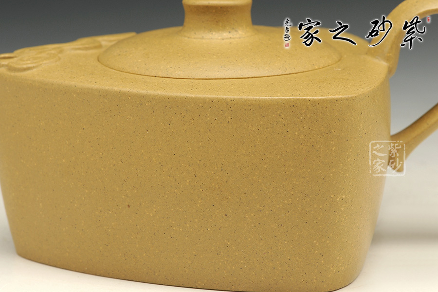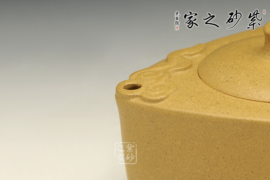 泥性:感甜嫩綿密,質(zhì)堅而溫潤,呈近田黃色調(diào),為江蘇宜興趙莊山系朱泥礦~黃石黃之共生礦,經(jīng)挑揀練製而成,因含鐵量只達6%左右,致陶之后呈“金田黃色”。