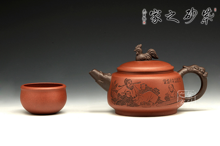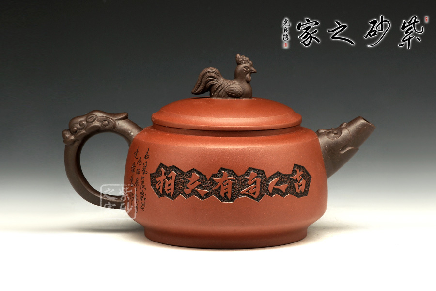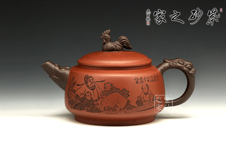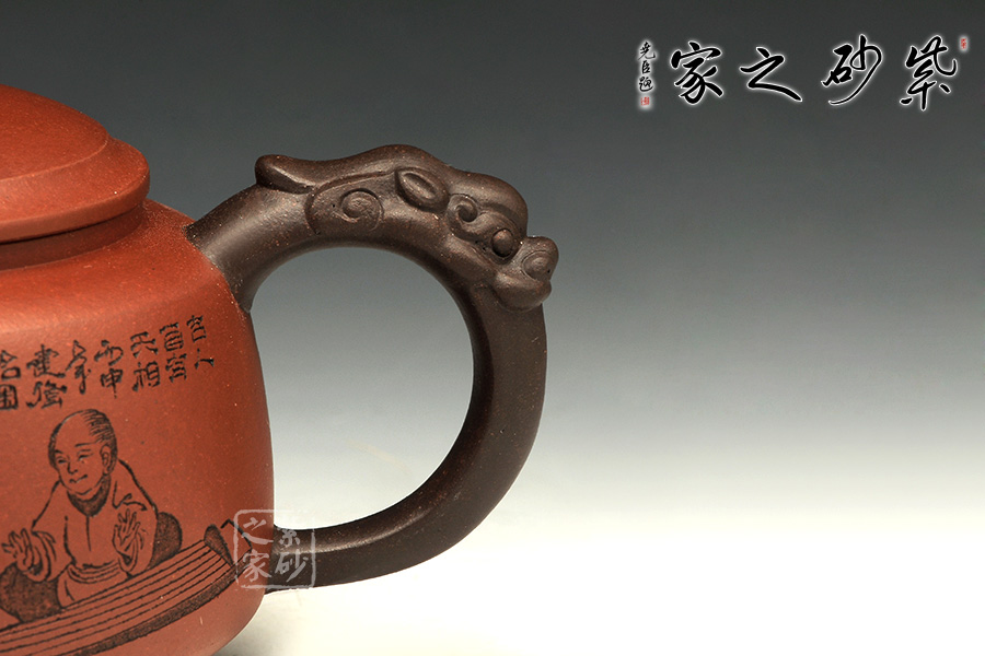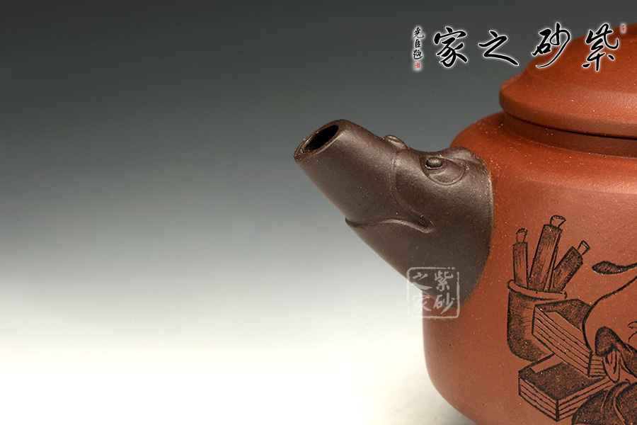 擅于自制自銘,精于雙色泥料制壺,裝飾手法玩裝金銀鑲嵌、堆泥貼花