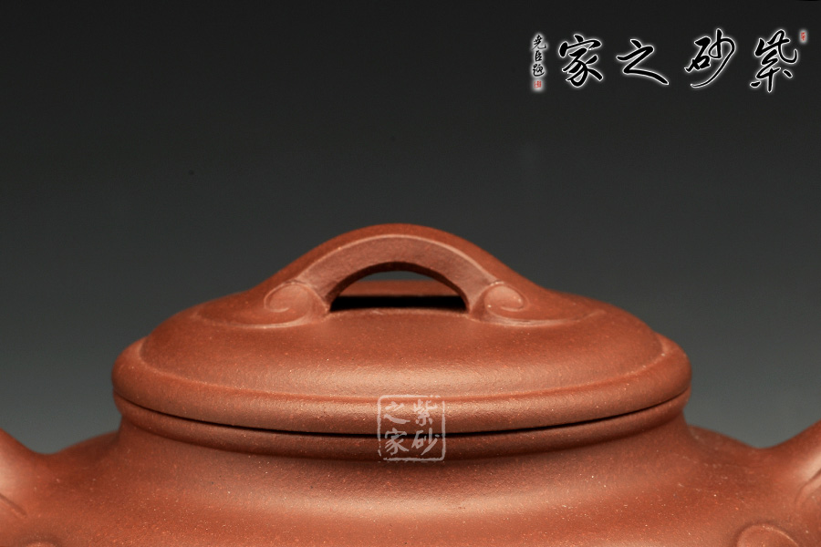 仿古如意在傳統(tǒng)仿古扁壺造型上加飾如意筋紋,身、蓋、頸、腹、鈕,錯落有致,骨肉亭勻,壺的口沿與壺蓋截成一條圓線,口蓋各占一半,蓋子蓋上即合成飽滿的圓線,其對作者的考量可想而知。壺流自然,壺把勻勢而起,且與壺身如意貫氣,壺鈕為如意形橋梁式,平緩舒展合體。整器精美絕倫,而且能夠在泥色的襯托下呈悠然、典雅之美。