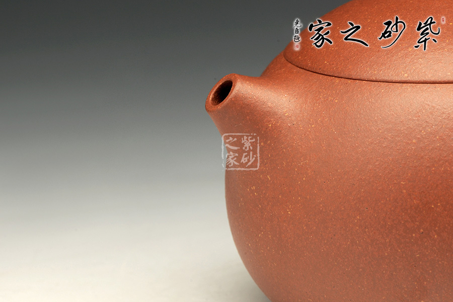 泥性:原礦因含緞泥、紅泥、紫泥等諸多共生礦,陶之后,于深沉之“橙紅色”底上,滿佈五彩斑斕的粗細(xì)、深淺之紅、黃星斑點(diǎn)。
