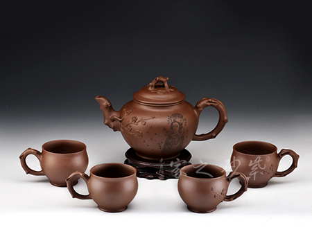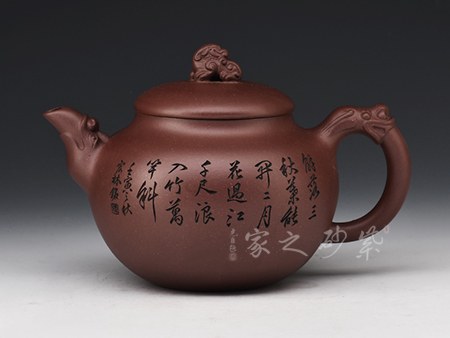 詩(shī)畫饋贈(zèng),領(lǐng)略文人之風(fēng):其作品多以厚重的文化底蘊(yùn)和精巧的刻繪工藝見長(zhǎng),這得益于其對(duì)書畫的極高造詣,一字一景耐人品評(píng),若能解其中之味,便能一語(yǔ)道破壺中天機(jī)。不時(shí) 有題詞或畫作贈(zèng)予壺友,互相交流學(xué)習(xí)。王濤之壺,文人之壺,茶香和著詩(shī)韻,乃是壺的精髓所在。近年來(lái)的紫砂作品傳統(tǒng)為主,力圖創(chuàng)新,具有鮮明的個(gè)性和文化特征。