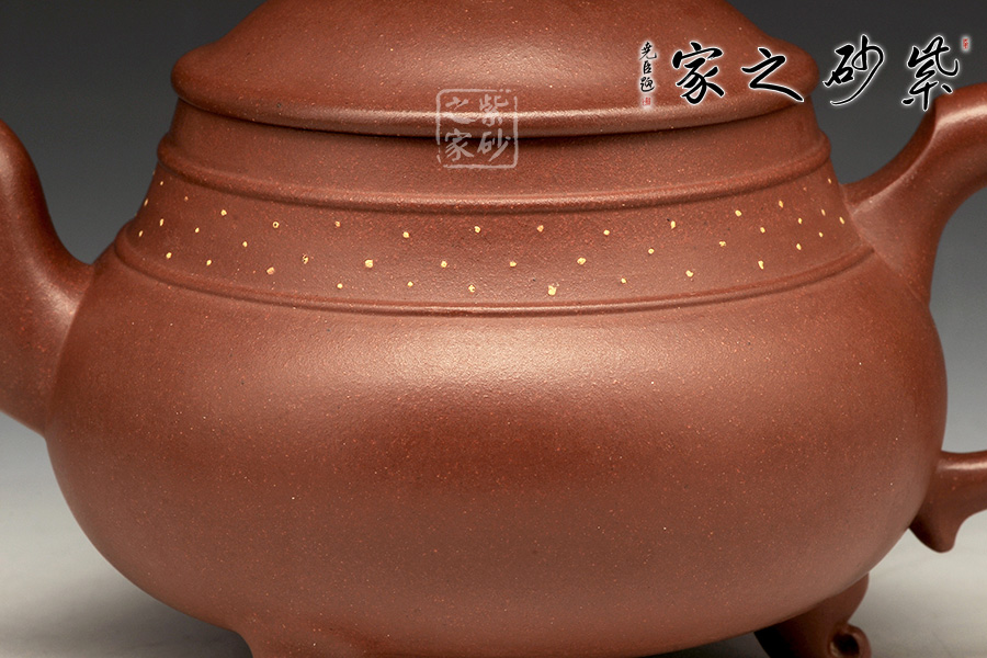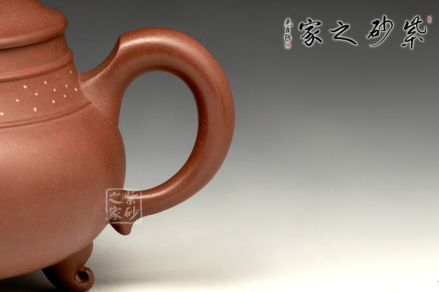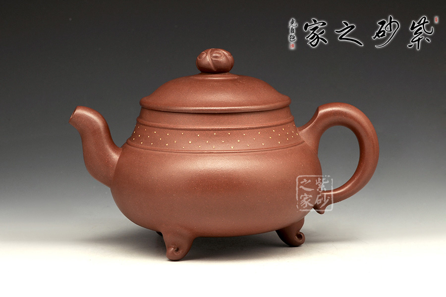 三足之勢(shì),穩(wěn)重霸氣,雖靈巧卻不失大度;品啜芳茗,神情灑脫,三足鼎立千軍一發(fā)之際,渾然乾坤靈氣,一把盡收。壺口高聳,壺鈕更是雄踞頂峰,將鼎的氣勢(shì)襯托得淋漓盡致,壺嘴與壺把都是經(jīng)典的造型,韻味厚重而不乖張,給人極其自然的感受。 此壺意趣深遠(yuǎn),實(shí)用更便于把玩。