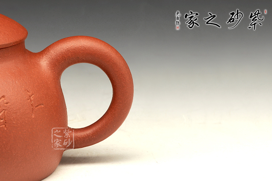 簡介:朱紅微嫣具綿密柔滑之砂感,水色溫潤度中等;熱水沖淋立展嬌嫩鮮紅特色,壺身游移紫光遽現,神秘迷人風韻令愛壺人神醉。以之沖茗之茶湯明亮活潑、快意果決、易展揚香而聚甘柔甜。朱泥原礦,胎骨堅硬而沉實,色澤朱紅略泛桔光,溫潤透明質感之佳,與清中期頂級朱泥無異;大器無法燒成,小品燒成后穀皺紋隱現,頗具古代朱泥風華。趙莊的朱泥原礦灰、白、帶黃棕色,呈片狀結構;本原礦由于泥性較重,故較不易成砂,需採自嫩泥礦中較堅硬的部份(年代較久, 且成陶后色調較紅豔,古稱“石骨”),再經敝古陶研究所繁複全手工的練製程序后,始能成陶!