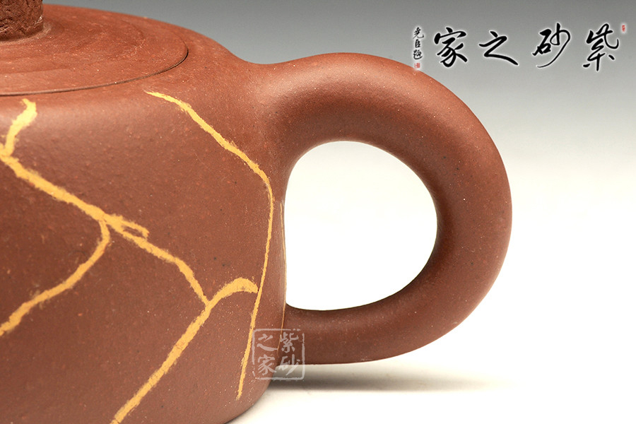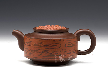 井欄,紫砂壺中的經(jīng)典款型之一。此款壺,不僅具有井欄壺的特點,而且因它獨特的創(chuàng)意和精湛的技藝更具有韻味,極具有收藏價值。