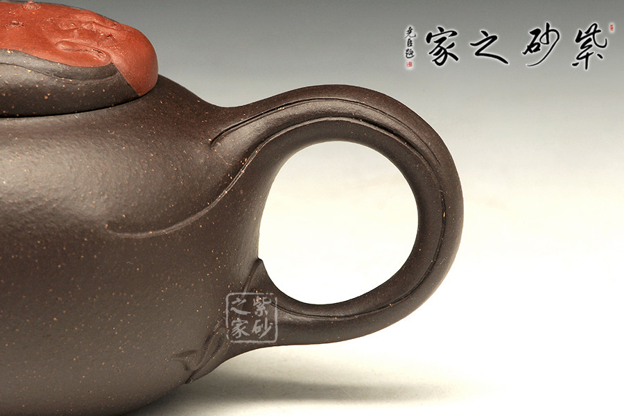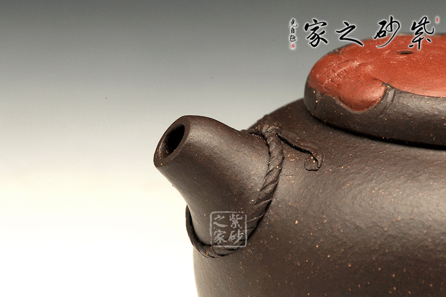 此壺由鐵砂泥全手工制作,老味濃厚,砂質(zhì)有感。壺體處處渾圓飽滿,古拙質(zhì)樸,內(nèi)斂有感、氣韻豐盈! 此器立意新穎,造型獨特,壺蓋采用雙泥制作,以上俯之,顯大度彌勒,顯“一團和氣”。壺把與壺流則筋紋線條,顯得逸美別致,不論美觀還是實用皆佳!
