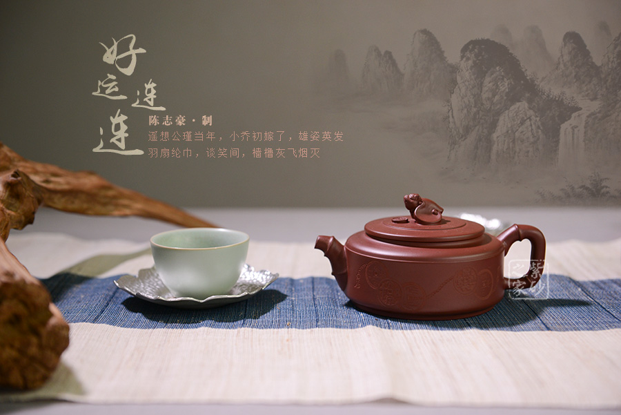 陳志豪:1973年出身于江蘇宜興,高級(jí)工藝美術(shù)師。1992年進(jìn)紫砂五廠培訓(xùn)中心,從師研究員級(jí)高級(jí)工藝美術(shù)大師顧美群,長期從事造型設(shè)計(jì)與創(chuàng)作,對(duì)光器制作有獨(dú)特見解,形成了自己的風(fēng)格。2002年6月《開片石瓢》榮獲蘇州博覽會(huì)銀獎(jiǎng),同年11月《凌韻壺》獲國家級(jí)工藝美術(shù)大師展銀獎(jiǎng),2004年9月《招財(cái)進(jìn)寶》獲太湖博覽會(huì)工藝美術(shù)精品展金獎(jiǎng)。作品多次刊登于有關(guān)專業(yè)書籍,在國內(nèi)各大城市壺展中有較高的評(píng)價(jià),作品被多個(gè)國家地區(qū)收藏家收藏。2015年10月榮獲首屆“景舟杯”中級(jí)職稱組銅獎(jiǎng)。